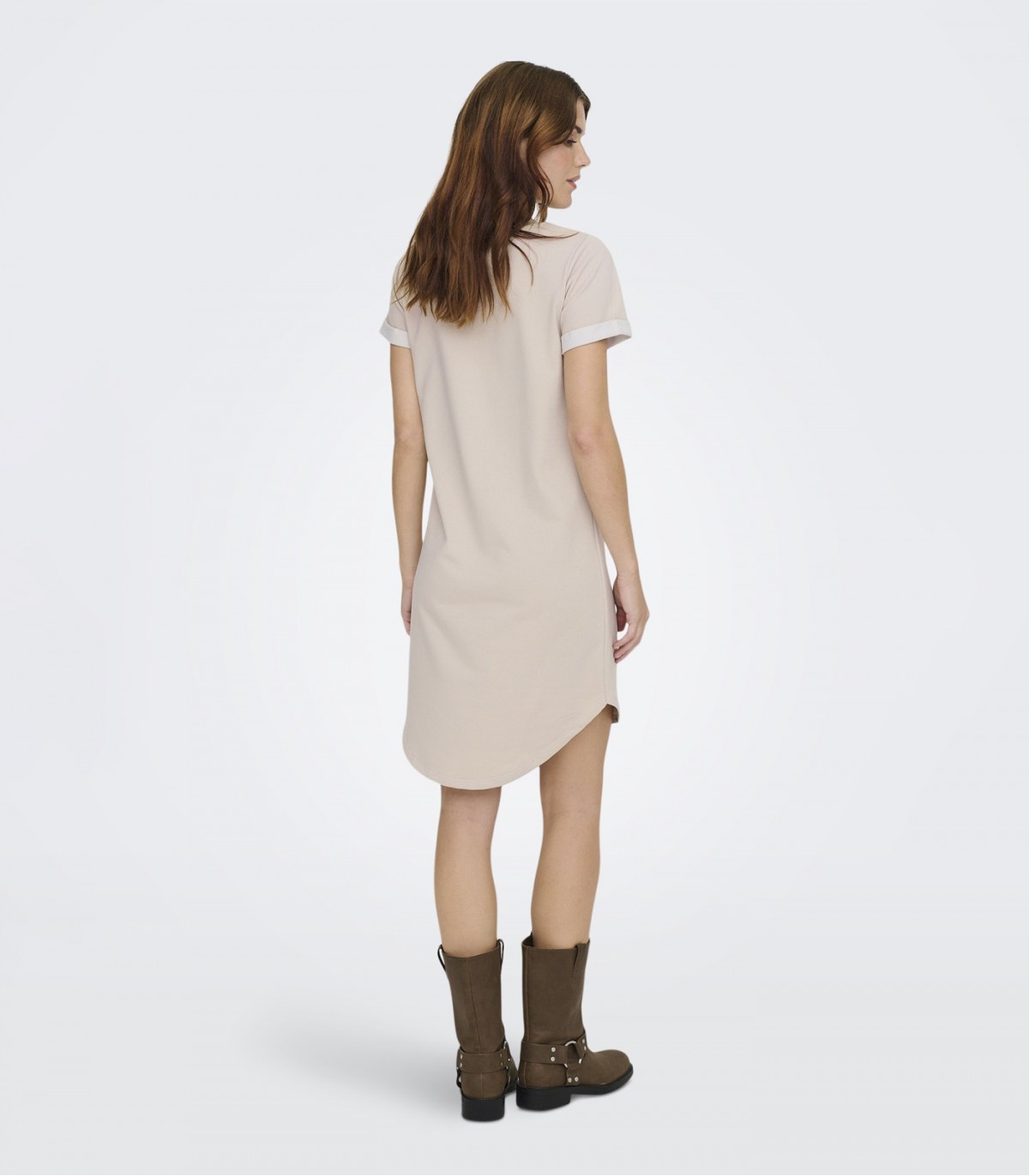 Женское трикотажное платье JDY, выполнено из мягкого, эластичного трикотажа, приятно прилегающего к телу. Короткие рукава с отворотами придают образу непринужденность, а закруглённые края подола создают плавный и женственный силуэт. Платье легко комбинируется с кедами, сандалиями или жакетом, отлично подходя для тёплого времени года.