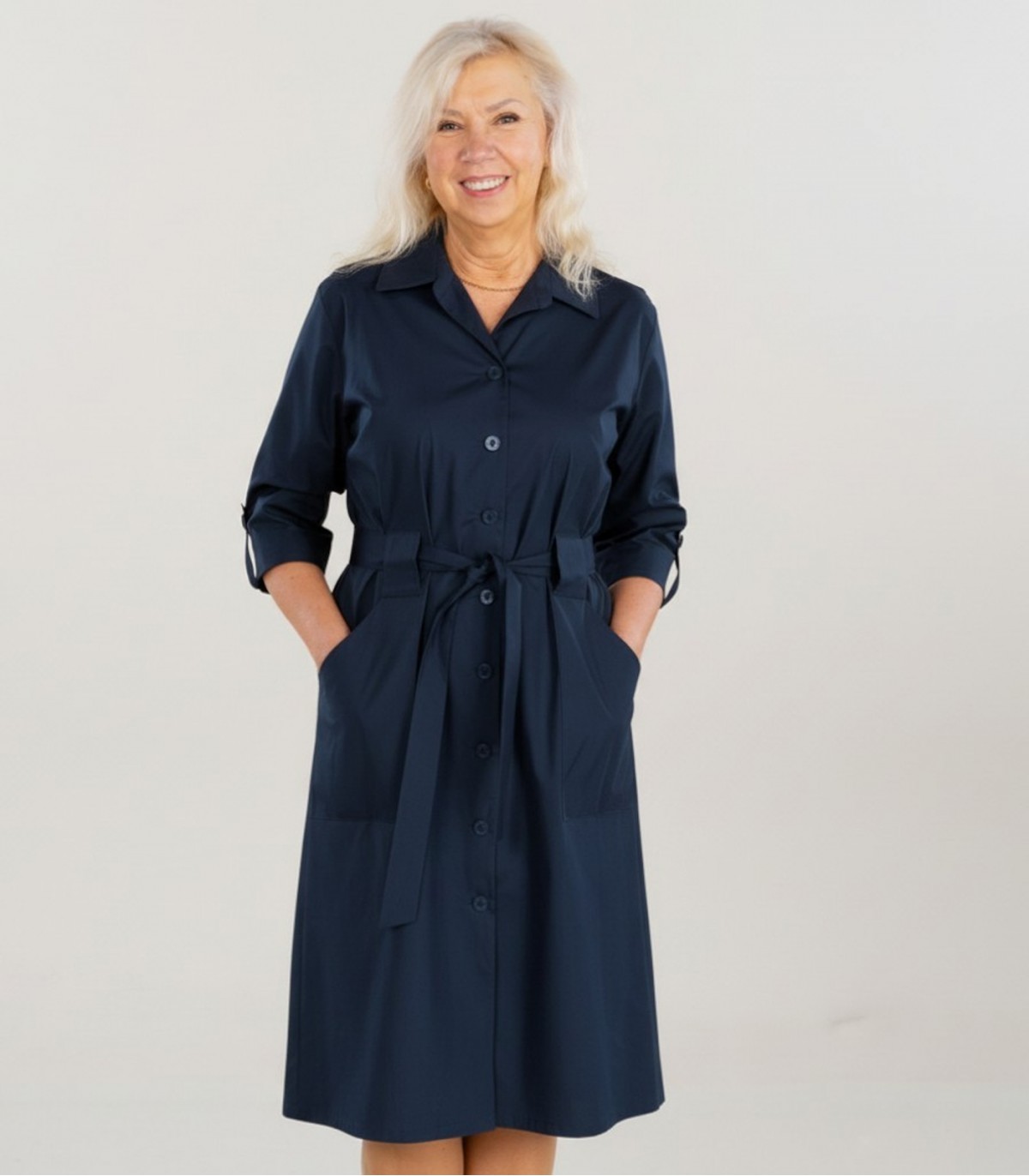 Классическое и практичное женское платье Hansmark прекрасно подойдет как для повседневной носки, так и для более официального мероприятия. Платье выполнено из более прочного материала, имеет воротник и застежку на пуговицы по всей длине. Пояс на талии подчеркивает фигуру, а практичные карманы добавляют комфорта.