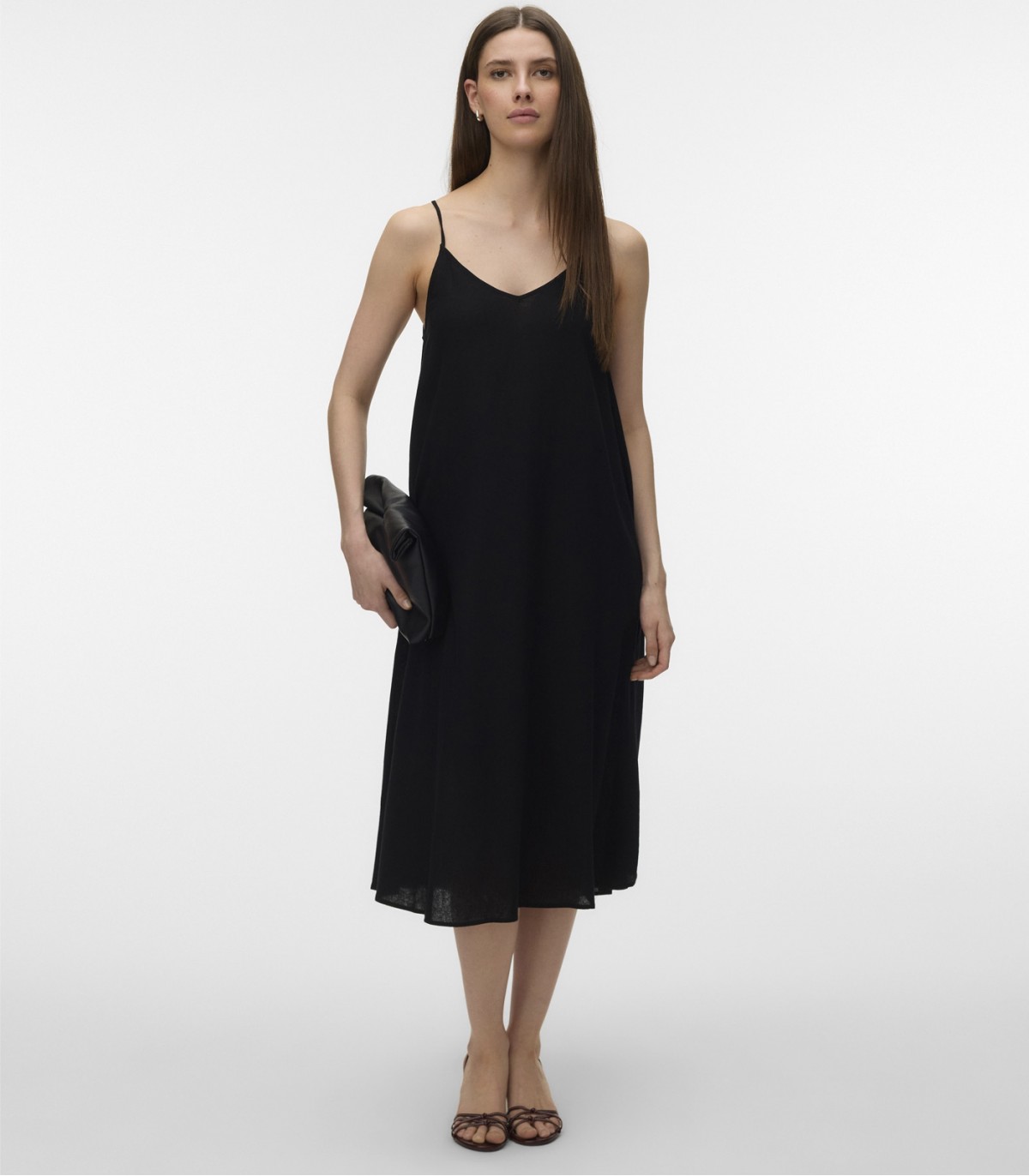 Женское платье-сарафан Vero Moda выполнено из мягкой вискозы и имеет свободный лаконичный силуэт. Модель без рукавов с круглым воротом на регулируемых завязках, лёгкая и комфортная для повседневного ношения. Легко сочетается с сандалиями, кроссовками и лёгкими кардиганами.