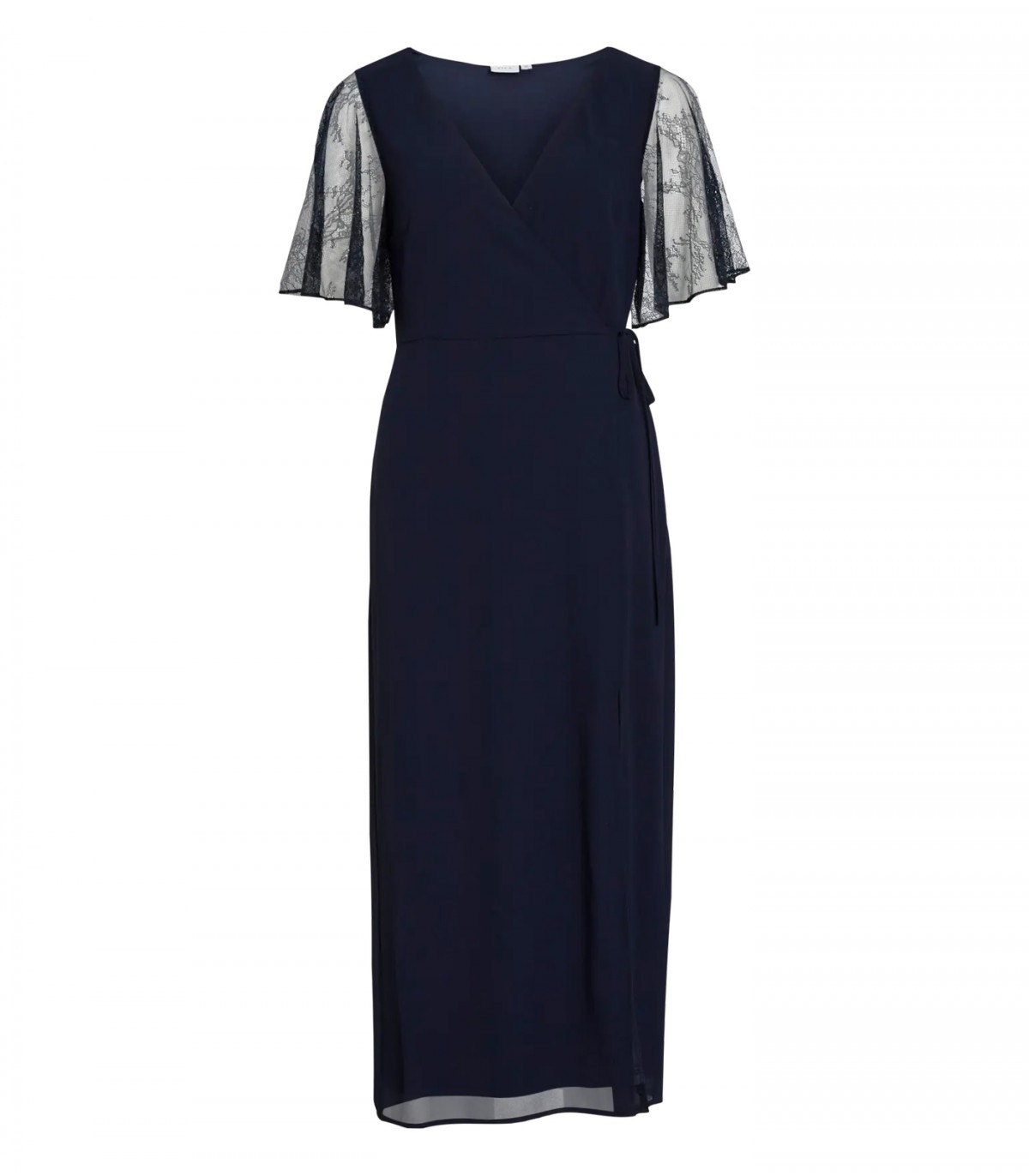 Элегантный и вневременной дизайн этого женского платья идеально подходит для торжественных случаев и особых моментов. Удлинённый крой, V-образный вырез и рукава с кружевной отделкой создают сбалансированный и женственный образ.