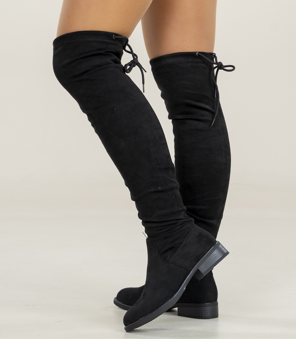 Черные ботфорты из мягкой искусственной замши. Ботильоны имеют классический силуэт, удобный и одновременно женственный, подойдут как к платью, так и к узким брюкам.