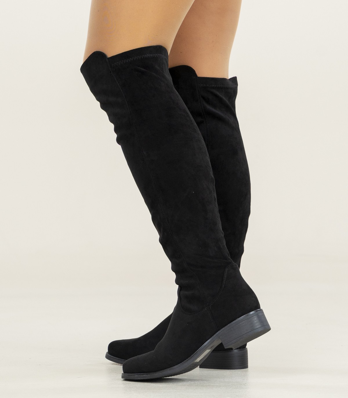 Женские ботфорты для осени и весны. Эластичный верх и низкий каблук удобны и хорошо сочетаются с юбками и узкими брюками.
