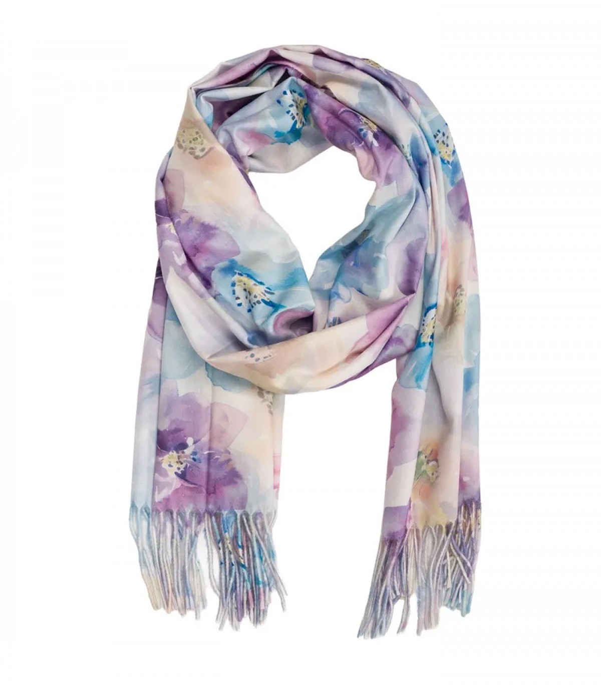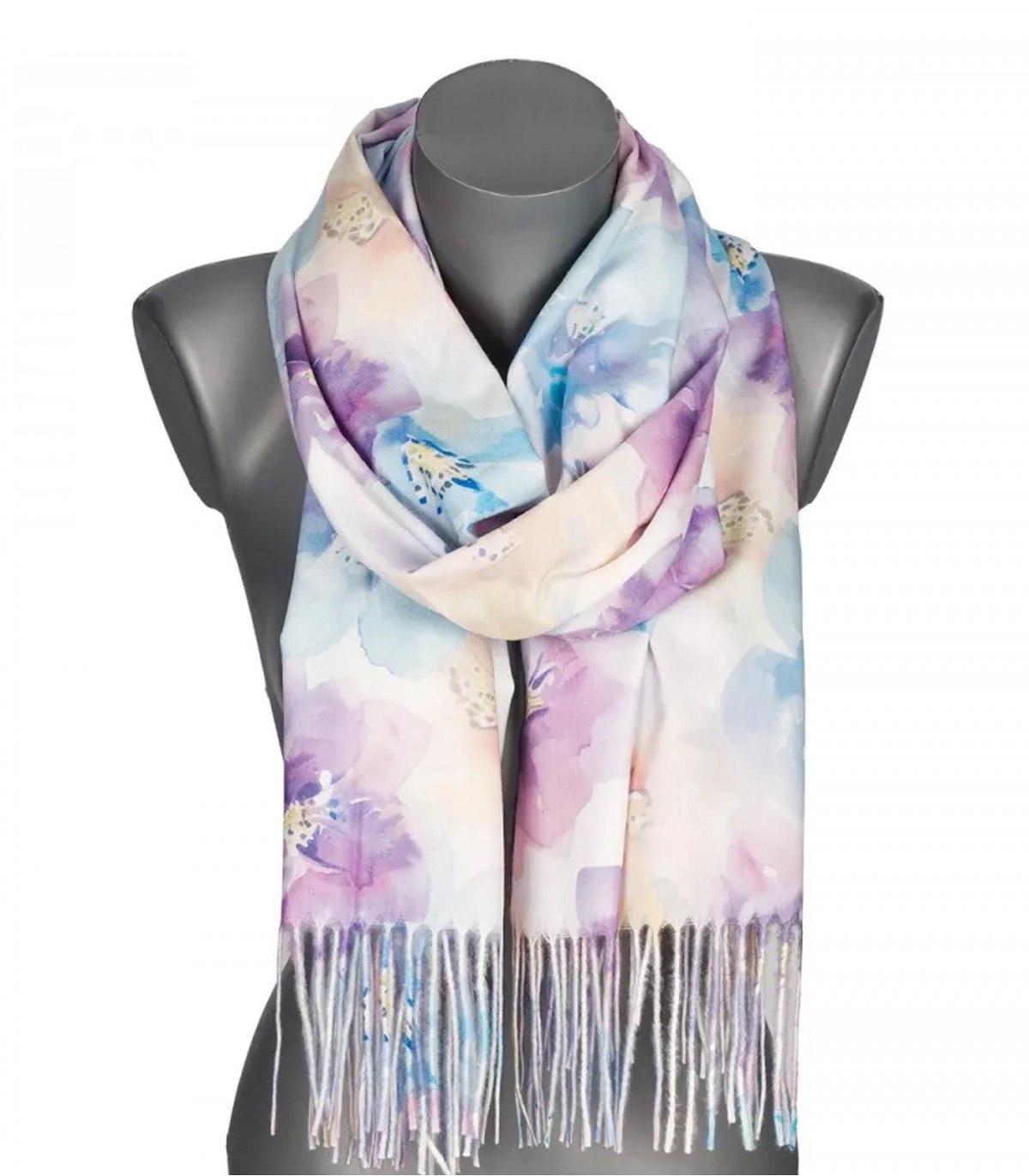 Оживите свой образ с этим очаровательным женским шарфом. Его лёгкая, мягкая ткань и модный цветочный узор с бахромой — идеальный аксессуар для осени и зимы, добавит ярких красок в любой наряд.
