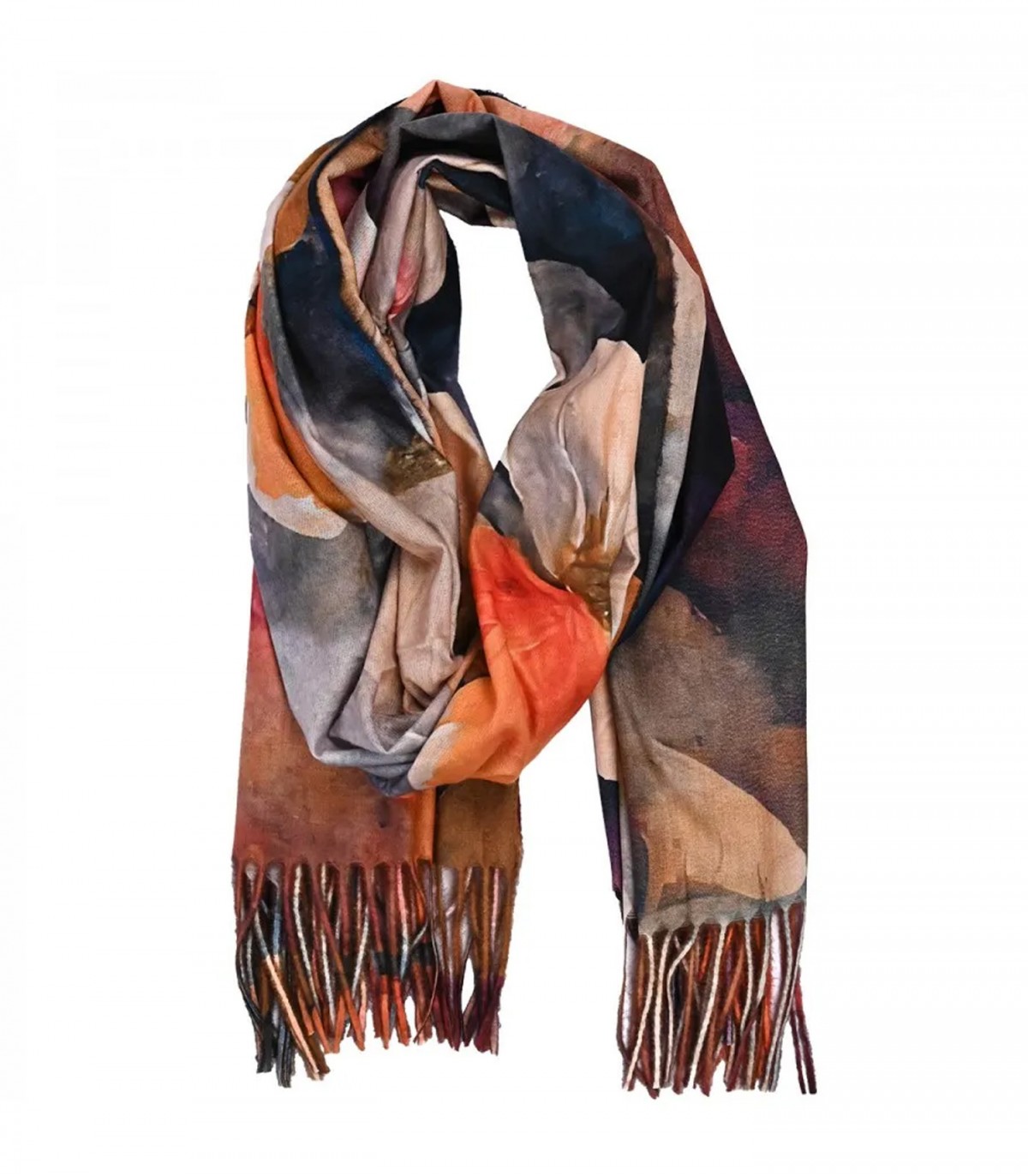 Оживите свой образ с этим очаровательным женским шарфом с бахромой. Его лёгкая, мягкая ткань и абстрактный акварельный узор притягивает взгляды — идеальный аксессуар для осени и зимы, добавит ярких красок в любой наряд.