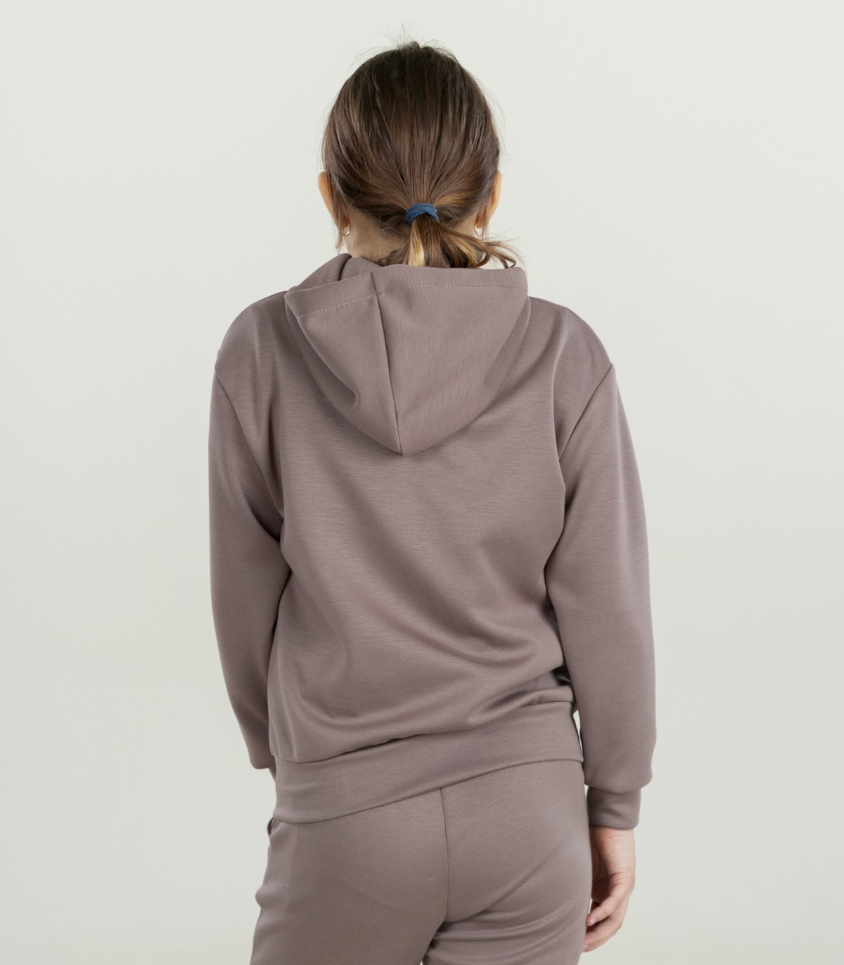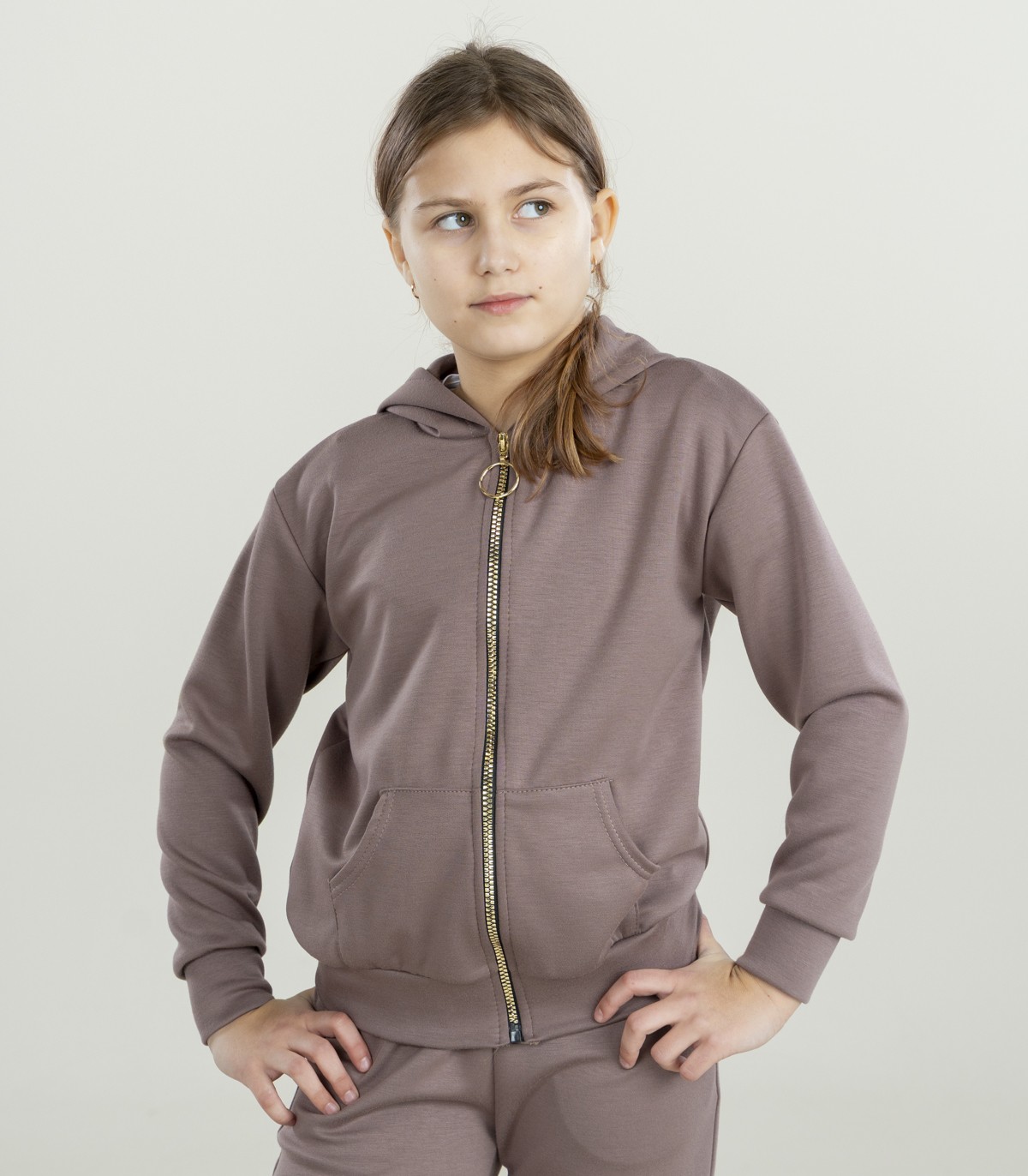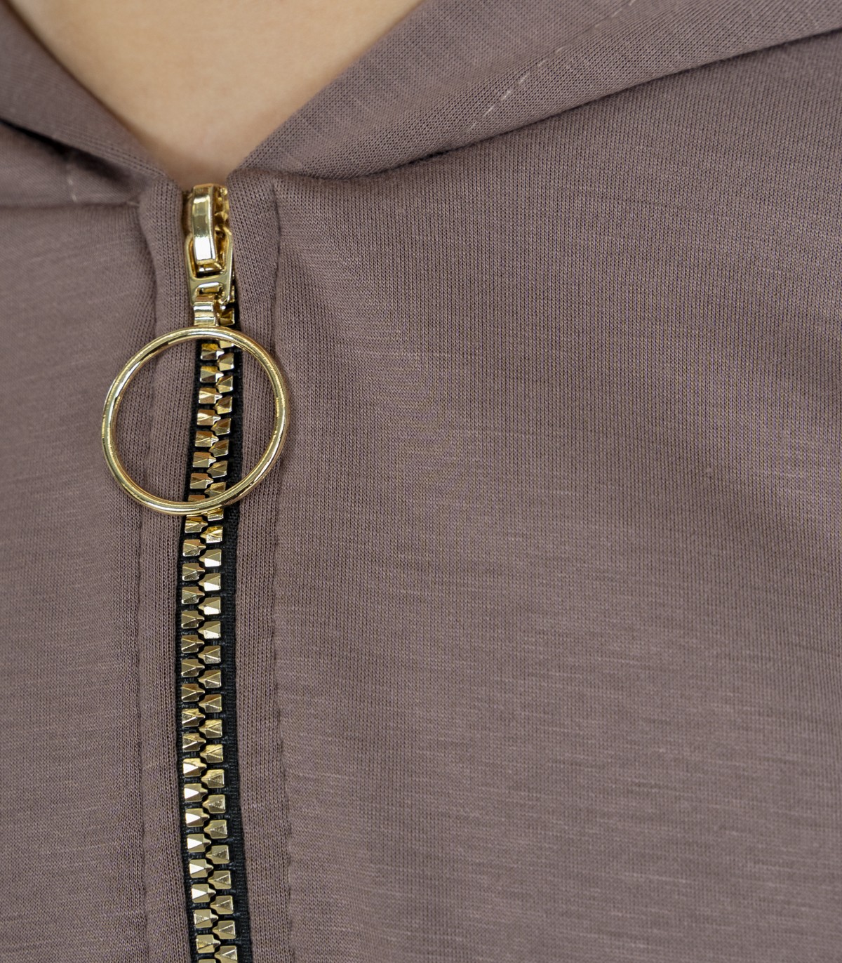 Толстовка из мягкой ткани идеально подходит для повседневной носки и занятий спортом. Модель имеет капюшон и золотистую молнию с круглым вырезом. Спереди расположены практичные карманы, а низ и рукава отделаны ребристой отделкой.
