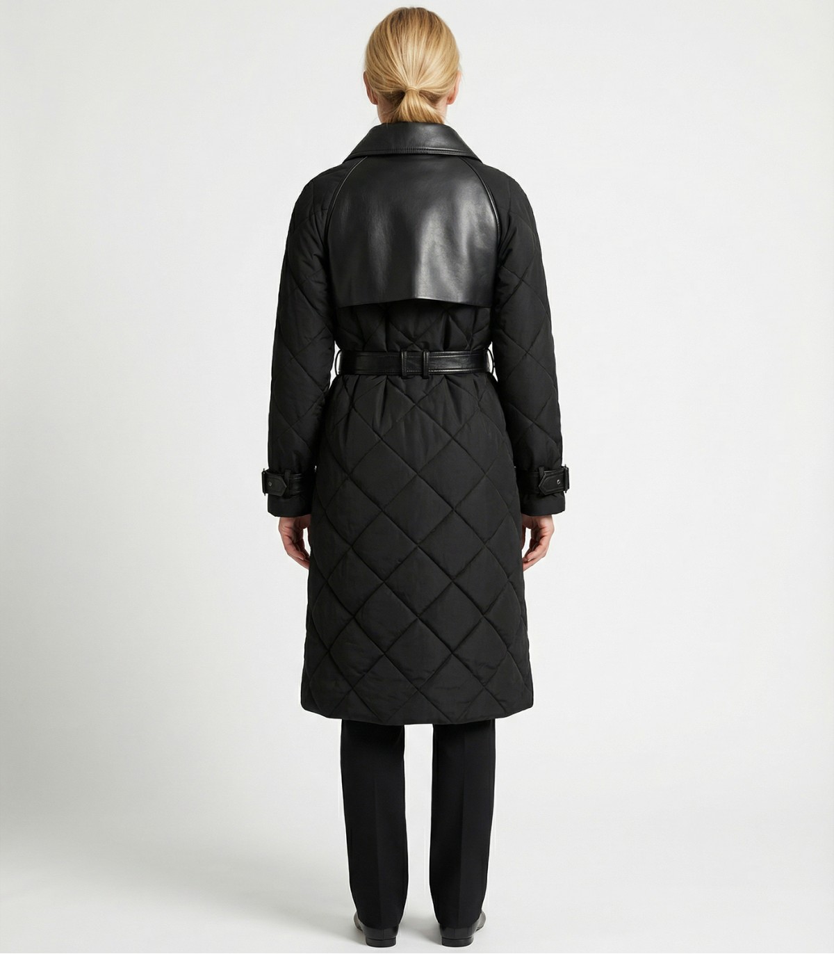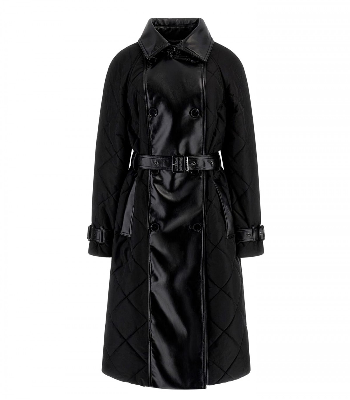 Элегантное удлиненное пальто Guess со стеганым узором и деталями из искусственной кожи.