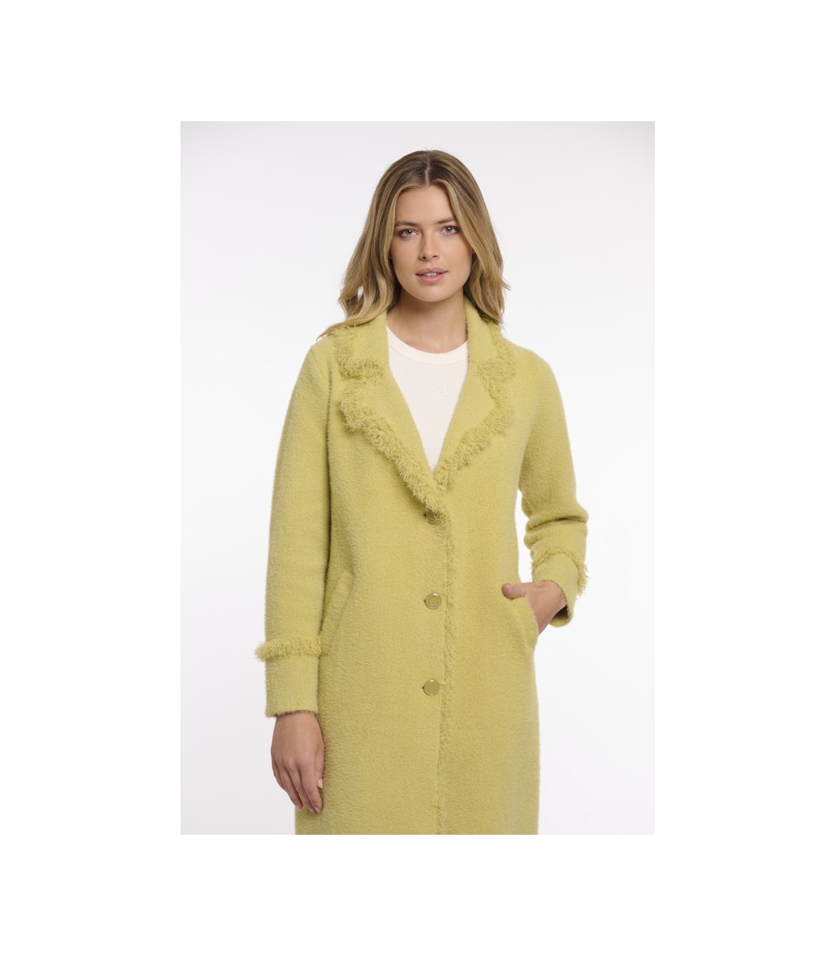 Женское пальто Rino & Pelle — изысканная модель с акцентом на детали, которая добавит образу утончённости и стиля. Однобортное пальто прямого кроя украшено декоративной бахромой на рукавах, воротнике и по краю борта, создавая эффектный и запоминающийся силуэт. Нежный бежевый оттенок подчёркивает элегантность модели, а боковые карманы делают её практичной для повседневной носки.