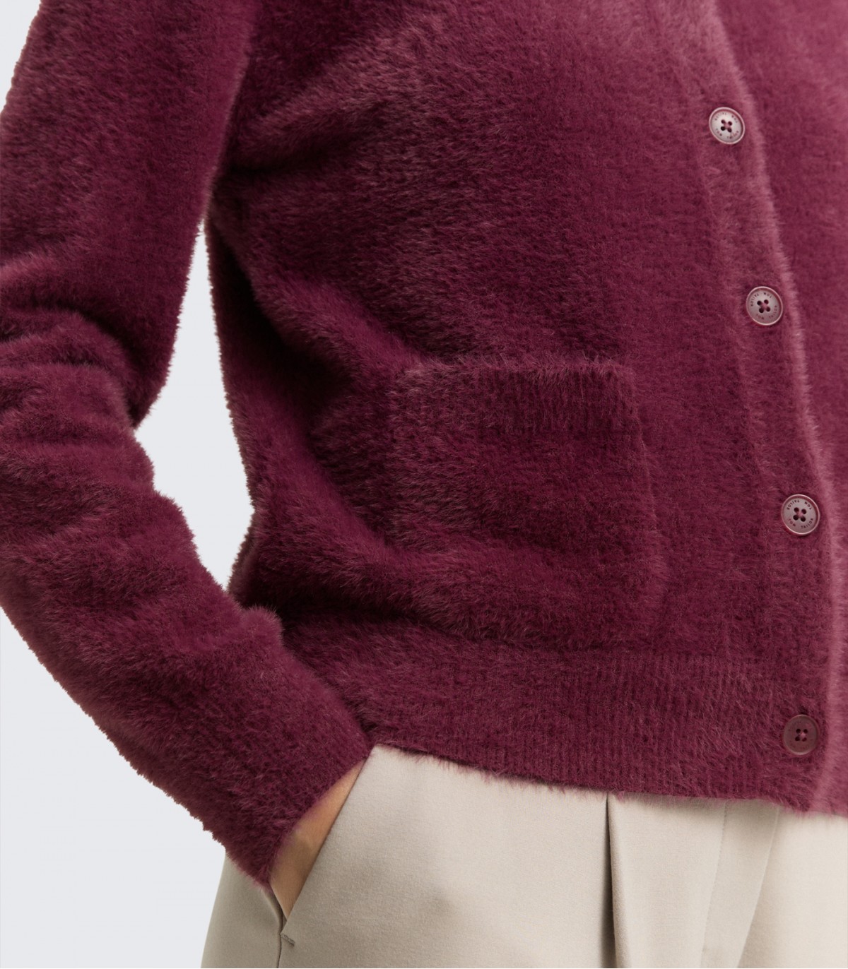 Кардиган из мягкой пряжи с застежкой на пуговицы и двумя передними карманами. Теплая и легкая текстура идеально подходит для прохладных дней и прекрасно сочетается как с брюками, так и с платьями.