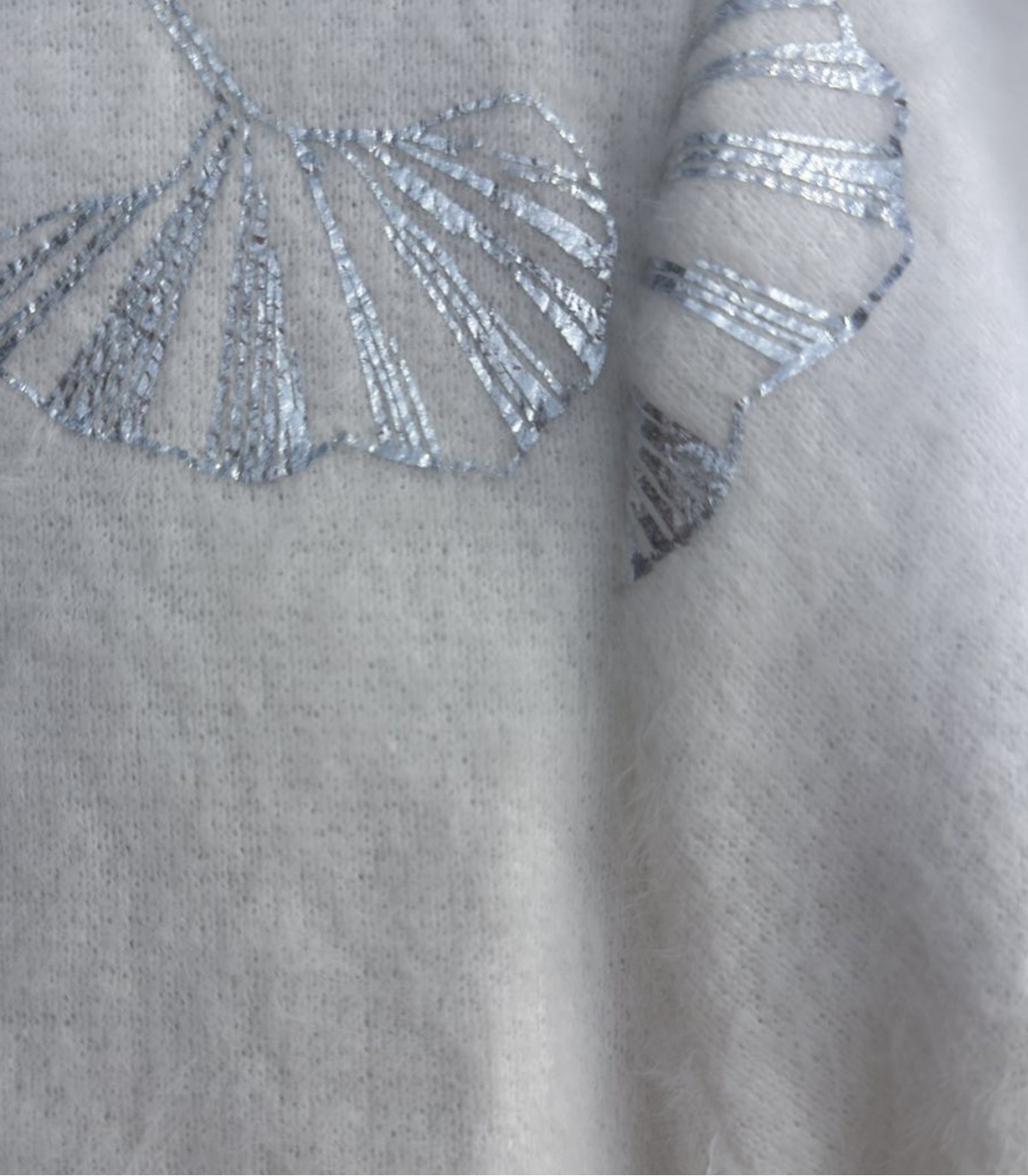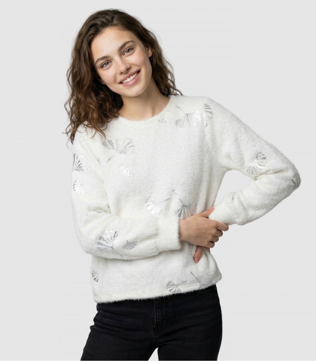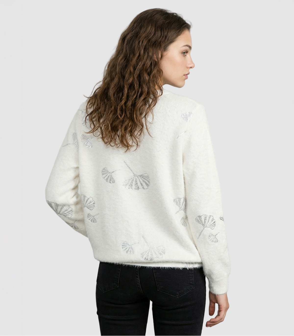 Мягкий и легкий женский свитер Hailys идеально подходит для прохладного времени года, как для повседневной носки, так и для создания более формального образа. Нежная пушистая текстура и серебристые узоры в виде листьев добавляют визуальный акцент к простому крою.