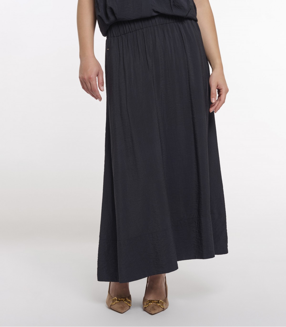 Элегантная миди-юбка, созданная для утонченного и женственного образа. Модель сшита из мягкой вискозной ткани, которая изящно драпируется и плавно струится при движении, подчеркивая легкость и грацию.