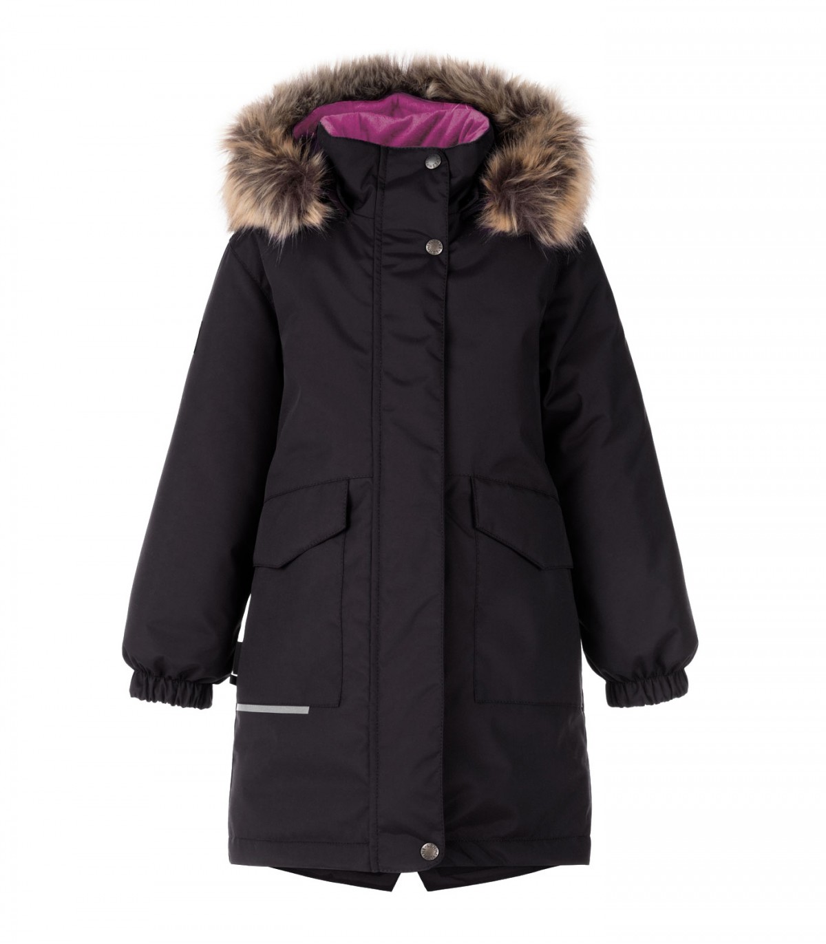 Практичная и тёплая зимняя парка удлинённого кроя для девочек. Ткань ActivePlus водонепроницаема, удобна, прочна и дышащая. Парка имеет регулируемую талию со стопором, которая адаптируется к росту ребёнка, а светоотражающие элементы обеспечивают безопасность. Съёмный капюшон украшен искусственным мехом и застёгивается на кнопки, которые легко отстегиваются, если он зацепится.