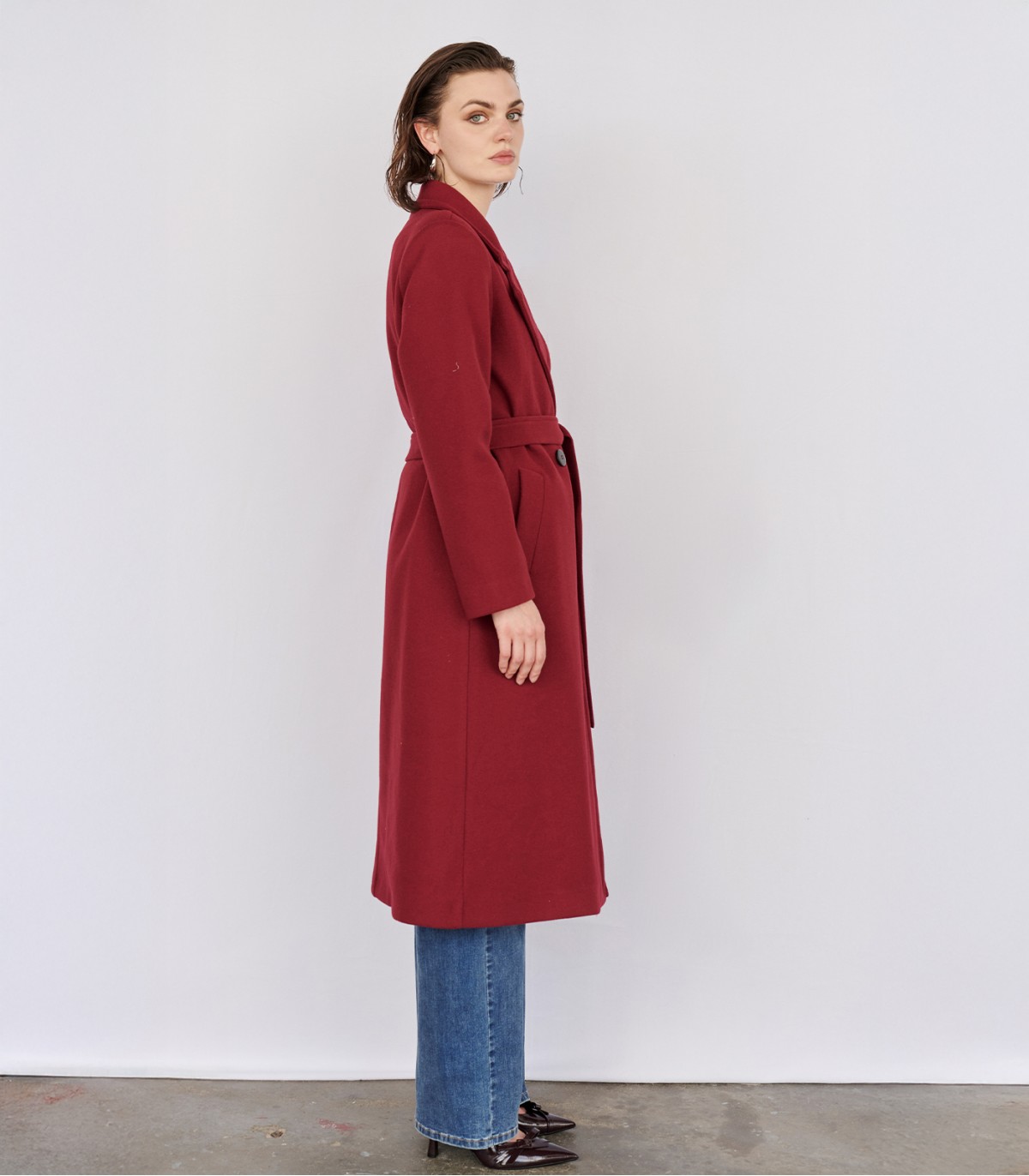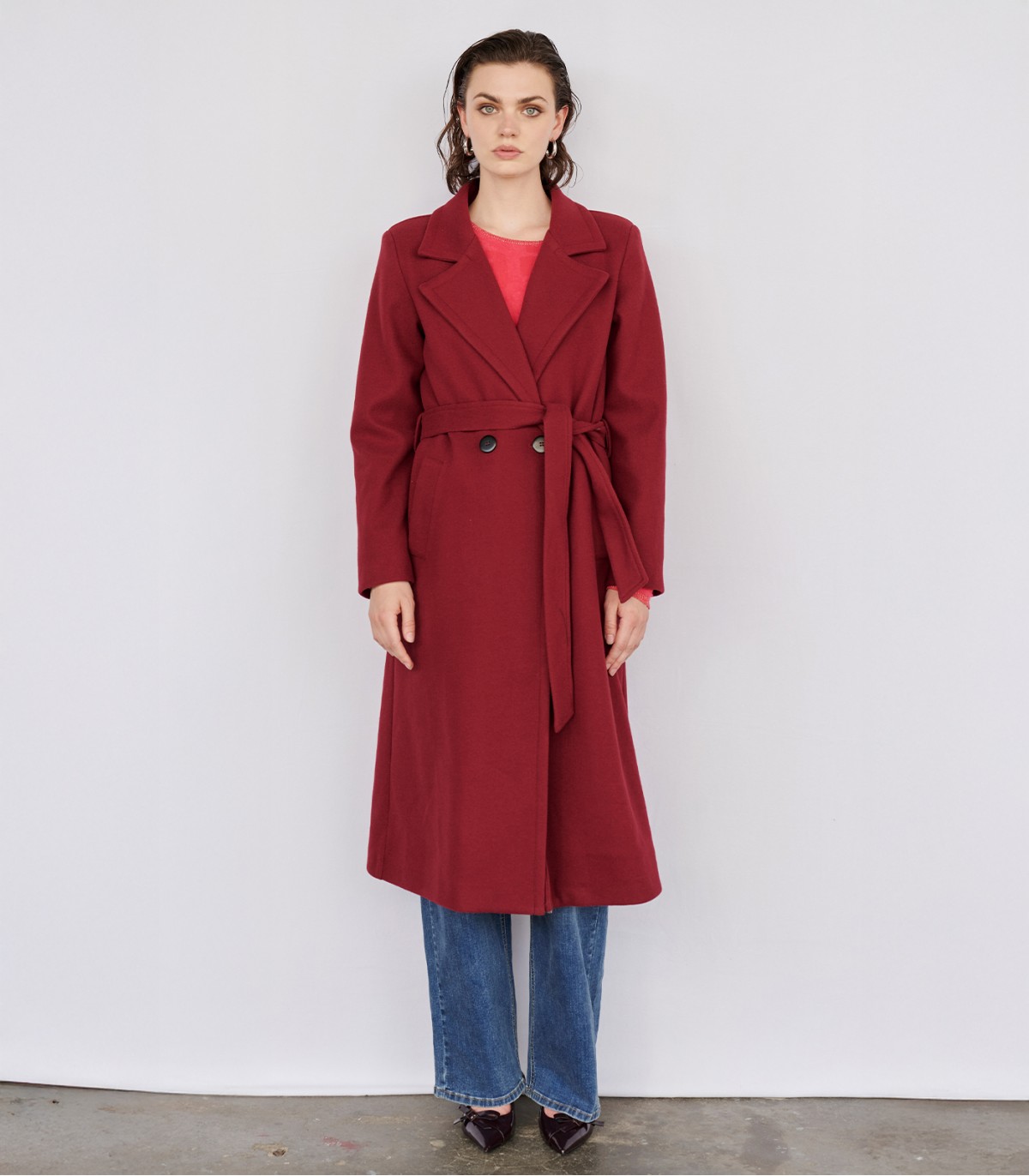 Классическое пальто подойдет как для повседневной носки, так и для торжественных случаев. Завязывающийся пояс на талии подчеркивает женственный силуэт.