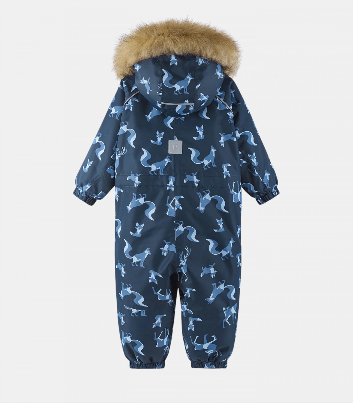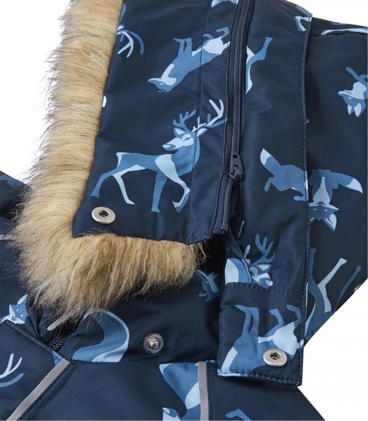 Детский красочный, тёплый зимний комбинезон Lappi со съемной отделкой из искусственного меха на капюшоне изготовлен полностью из водонепроницаемого дышащего прочного материала отталкивающего грязь. Материал также дышащий и ветронепроницаемый.
