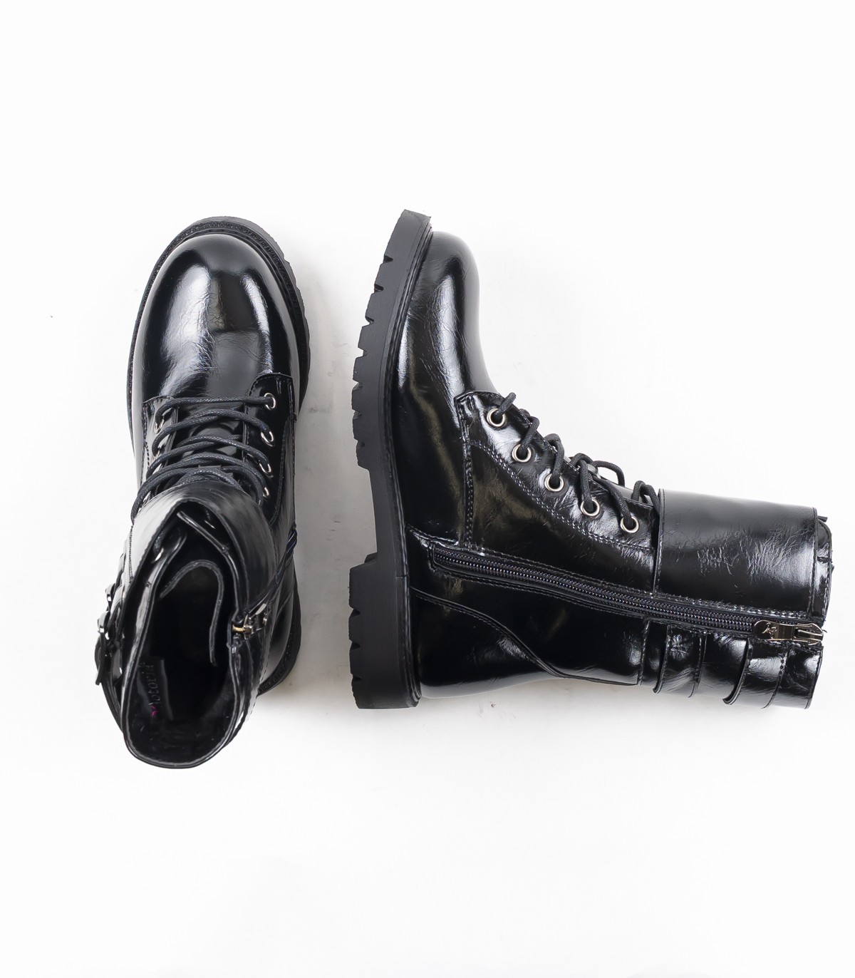Современные и практичные женские ботинки черного цвета. Глубокий рисунок на подошве обеспечивает хорошее сцепление даже на скользкой поверхности.