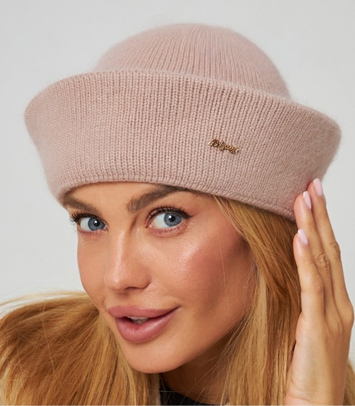 Классическая мягкая женская шляпа, тёплая и удобная в прохладные дни. У шляпы подвёрнутые поля и небольшой металлический логотип сбоку.
