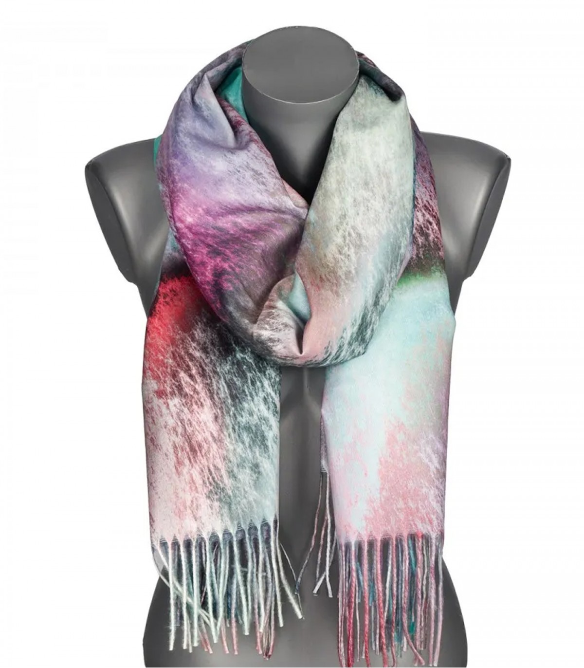 Atdzīvini savu izskatu ar šo unikālo sieviešu šalli ar abstraktu rakstu. Mīksta un silta, tā ir lielisks papildinājums tavam ikdienas tēlam, vienlaikus pasargājot tevi no aukstuma.