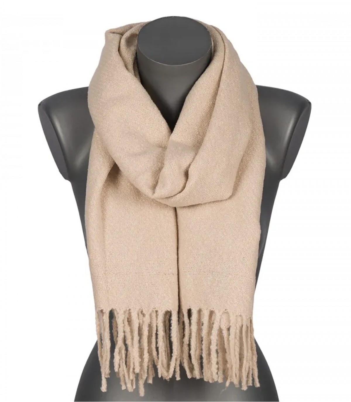 Šī vienkrāsainā sieviešu šalle ir lielisks aksesuārs komfortam un stilam, piešķirot personisku pieskārienu jebkuram izskatam, savukārt bārkstiņi padara to par ikdienas pamatelementu.