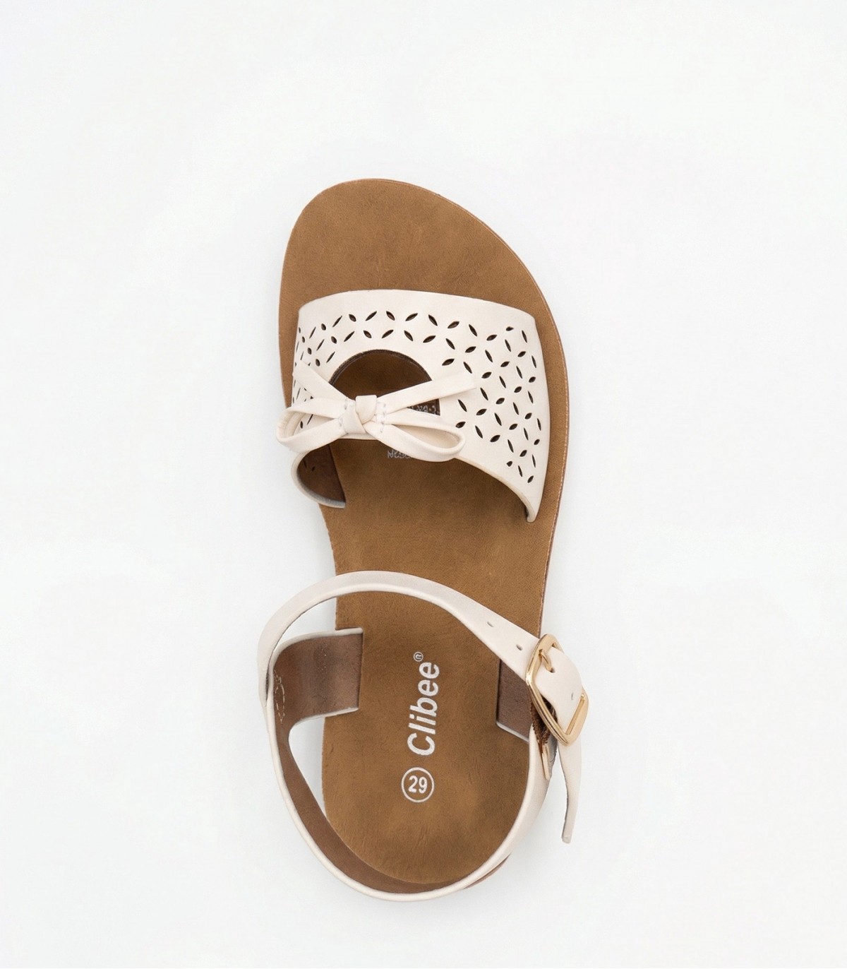 Šīs košās meiteņu sandales ir lieliski piemērotas ikdienas vasaras valkāšanai. Plato siksniņu rotā mazi dekoratīvi izgriezumi un rotaļīga saite.