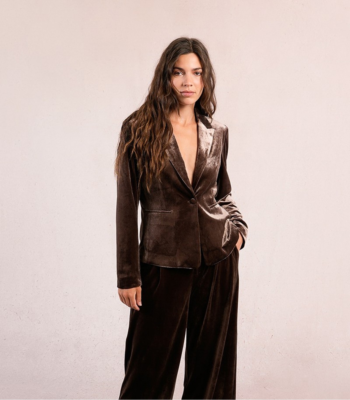 Šī elegantā, taisna piegriezuma jaka no Molly Bracken ir darināta no mīksta samta ar greznu spīdumu. Tās sievišķīgais, pieguļošais siluets un vienkāršais dizains izceļ tēla izsmalcinātību un izsmalcinātību.