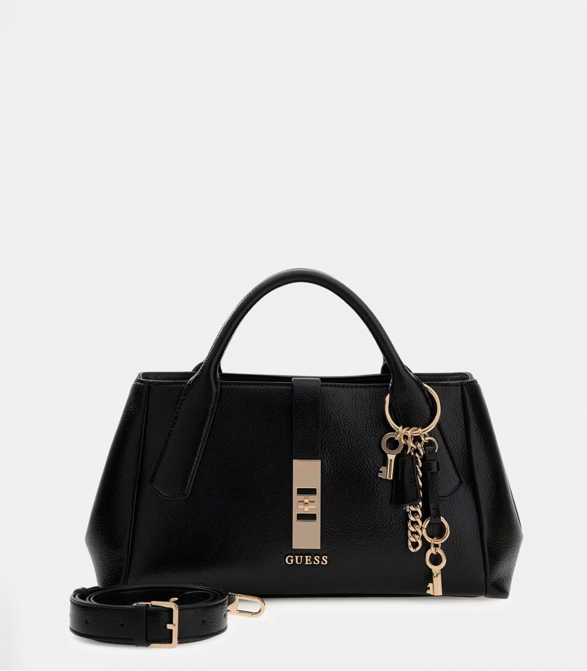 Guess Brooke sieviešu soma ir izgatavota no augstas kvalitātes mākslīgās ādas un dekorēta ar zelta krāsas furnitūru, piešķirot tai stilīgu un elegantu izskatu. Tai ir noņemami piekariņi ar zīmola logotipu un personalizēta odere. Ērts rāvējslēdzējs nodrošina drošu aizdari, savukārt iekšējās un aizmugurējās kabatas nodrošina glītu organizēšanu.