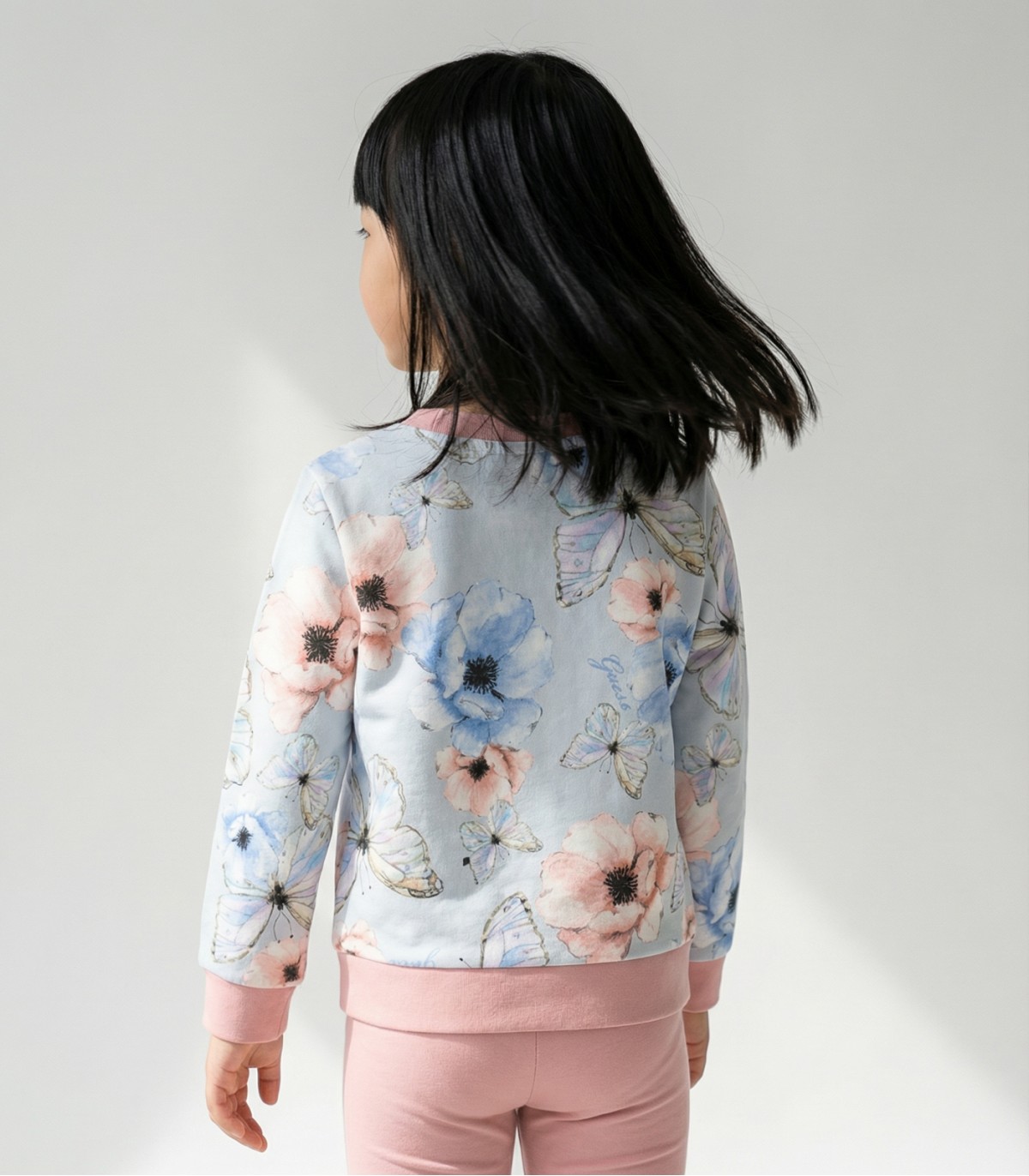 Džemperis ar ziedu un tauriņu apdruku un mirdzošu Guess logotipu. Ērts, mīksts kokvilnas audums ir lieliski piemērots ikdienas valkāšanai.