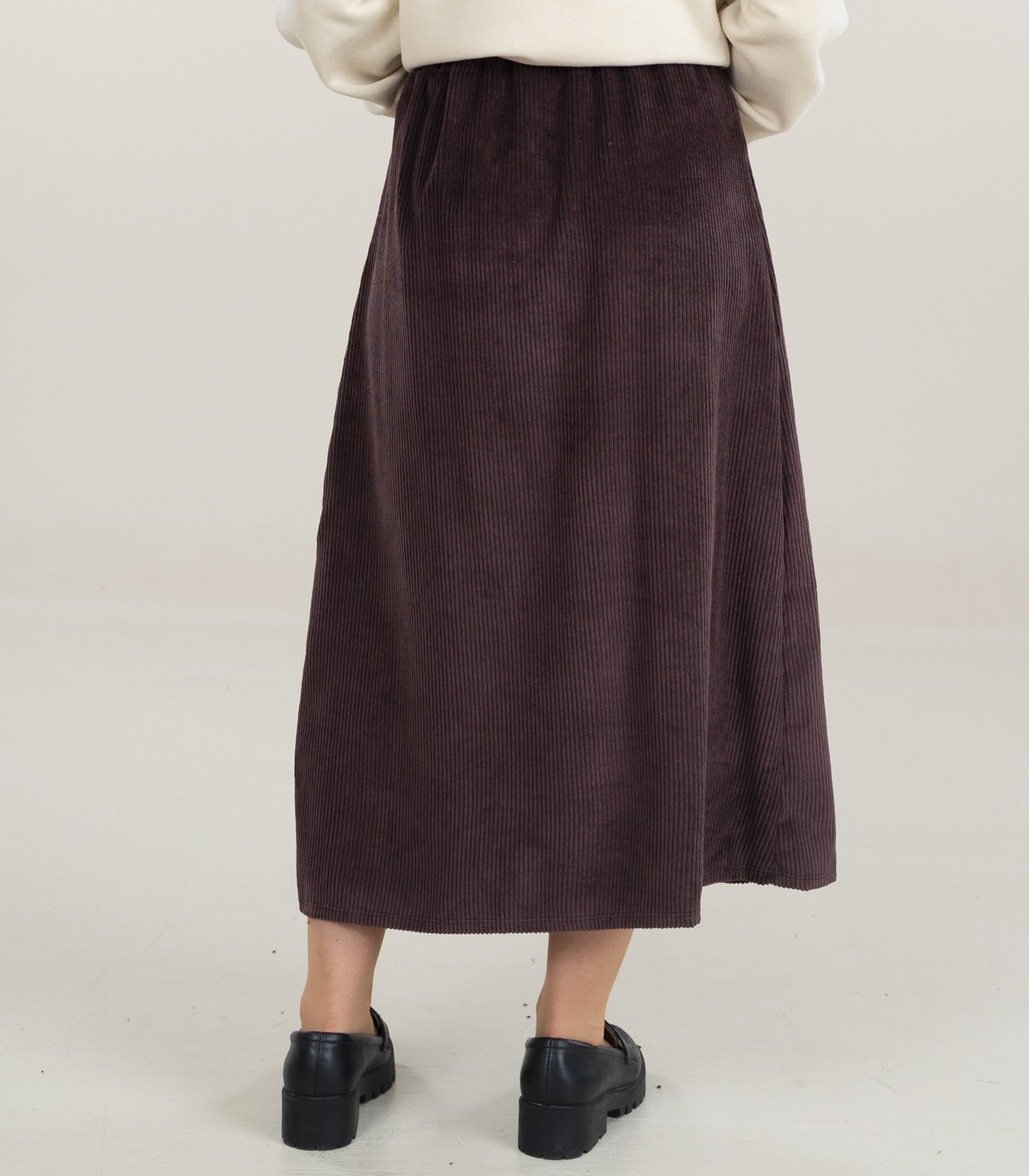 Mīksti un sievišķīgi tumši brūni samta svārki. Elastīga jostasvieta un sasienama lente nodrošina ērtu piegulšanu.