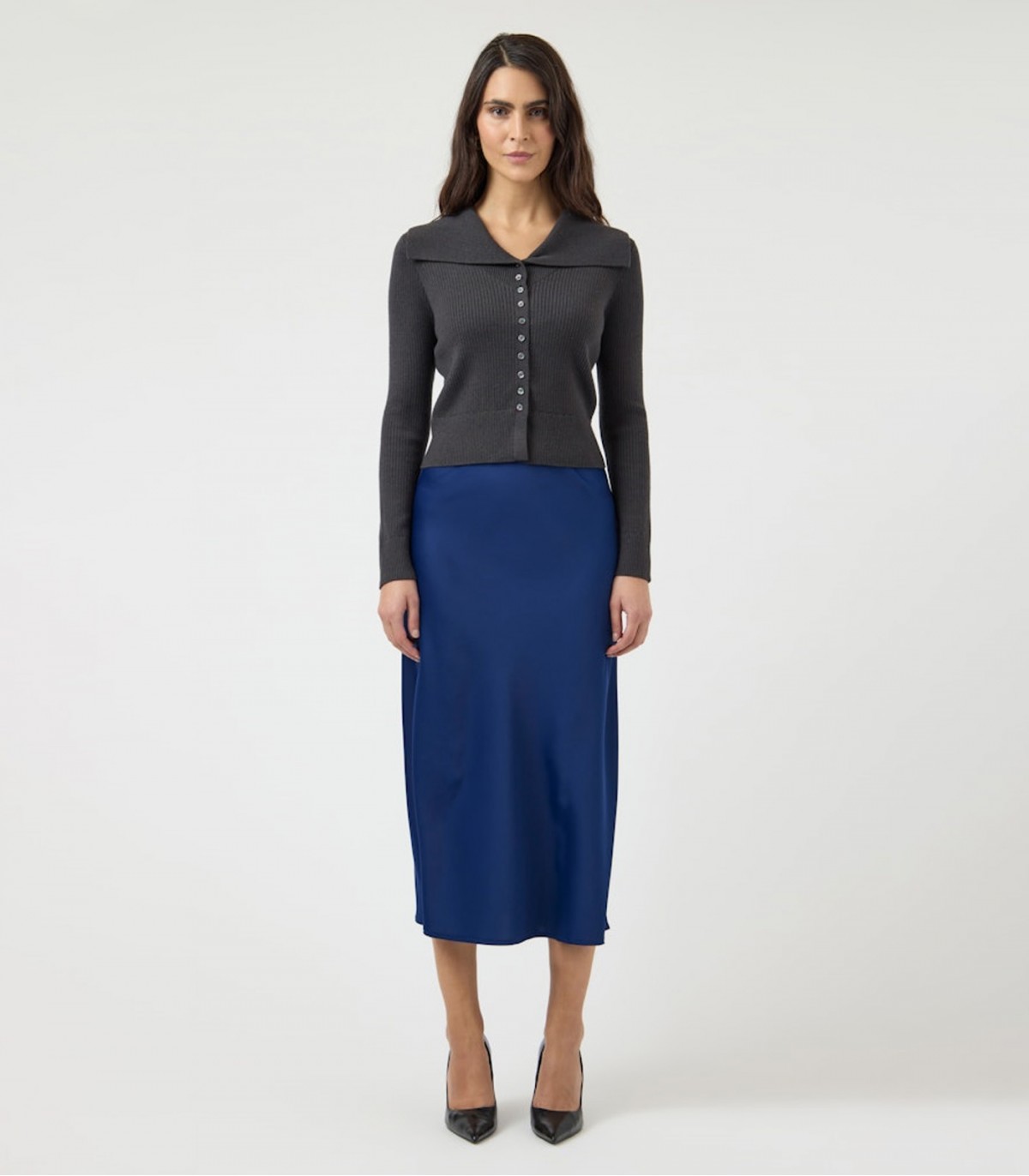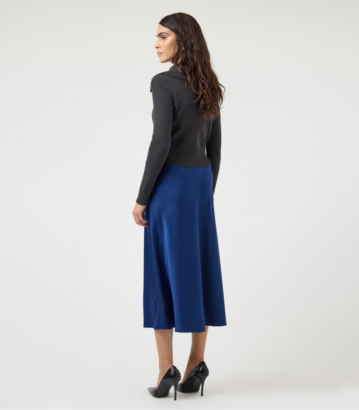Šie elegantie satīna midi svārki ir lieliski piemēroti gan ikdienas valkāšanai, gan īpašiem gadījumiem. Klasiskais piegriezums un smalkais spīdums piešķir tiem mūžīgu, stilīgu izskatu.