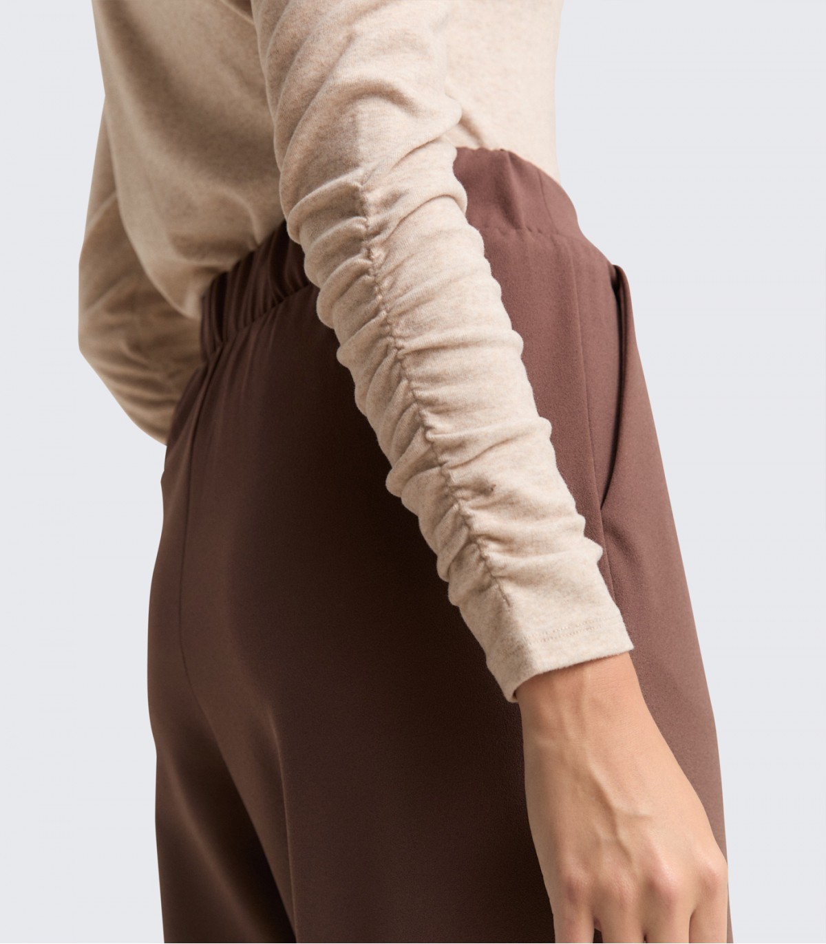 Sievišķīgs, ērts un mīksts krekls ar garām piedurknēm un izteiksmīgām ielocēm. Izgatavots no viegla, elastīga auduma, tas ir lieliski piemērots ikdienas valkāšanai vai valkāšanai slāņos vēsākā laikā.