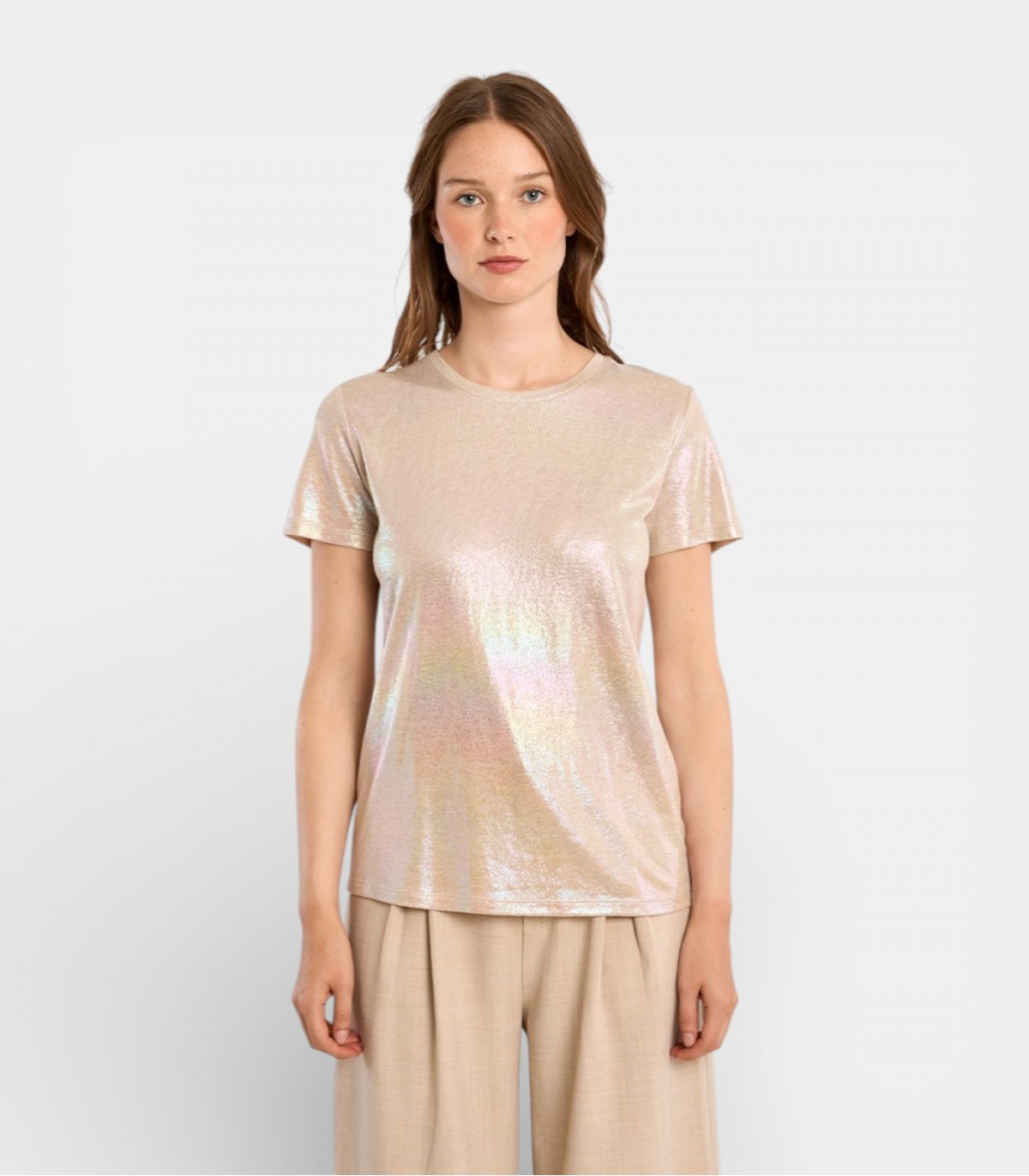 Molly Bracken sieviešu t-krekls ar taisnu piegriezumu un zaigojošu efektu. Elegants modelis stilīga un moderna izskata radīšanai.
