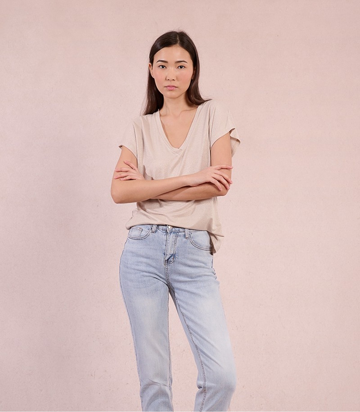 T-kreklu var viegli kombinēt ar biksēm, svārkiem un džinsiem, padarot to ideāli piemērotu gan ikdienas, gan vakara tēlam.