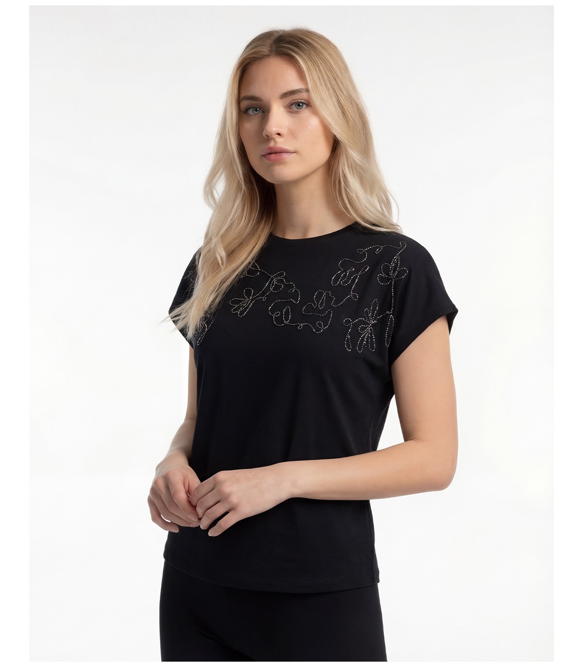 Sieviešu JDY T-krekls ar vienkāršu izšuvumu krūšu daļā. Vienkāršs siluets ar izsmalcinātu akcentu.