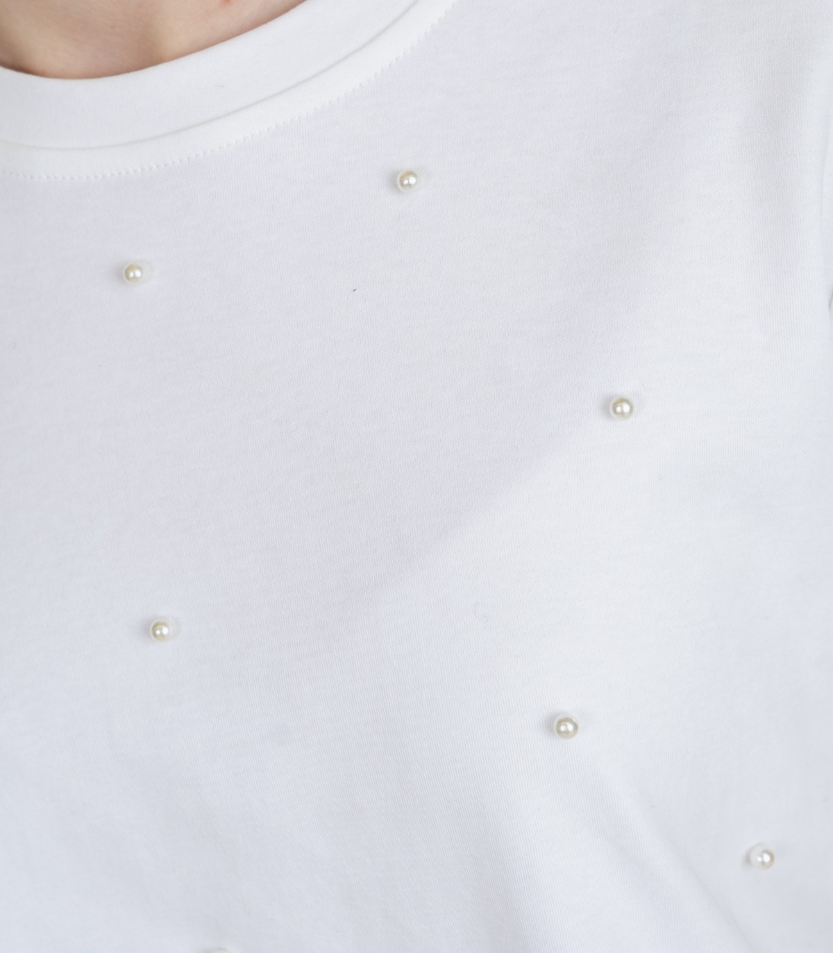Šim Hailys sieviešu T-kreklam ir vienkāršs piegriezums un sievišķīgas detaļas ikdienas valkāšanai. Priekšpusē ir mazas, smalkas pērlītes. Mīkstais kokvilnas audums nodrošina komfortu visas dienas garumā.