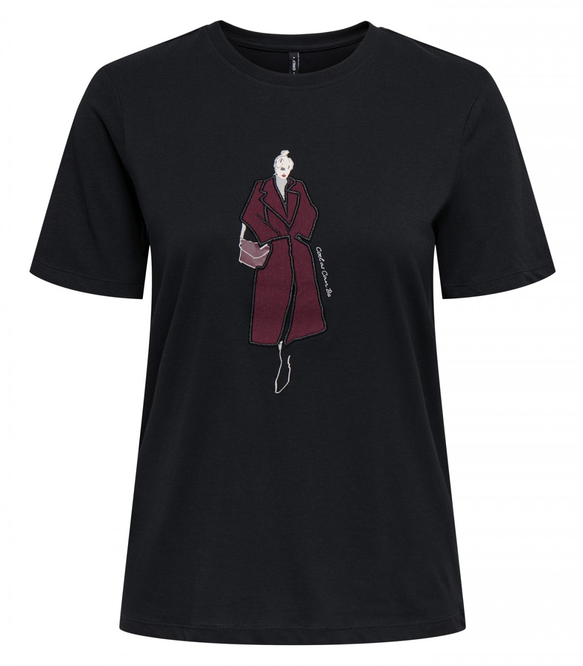 Sieviešu īsroku kokvilnas T-krekls. Priekšpusē ir moderna ilustrēta apdruka. Mīksts, elpojošs audums nodrošina ērtu valkāšanu ikdienā.
