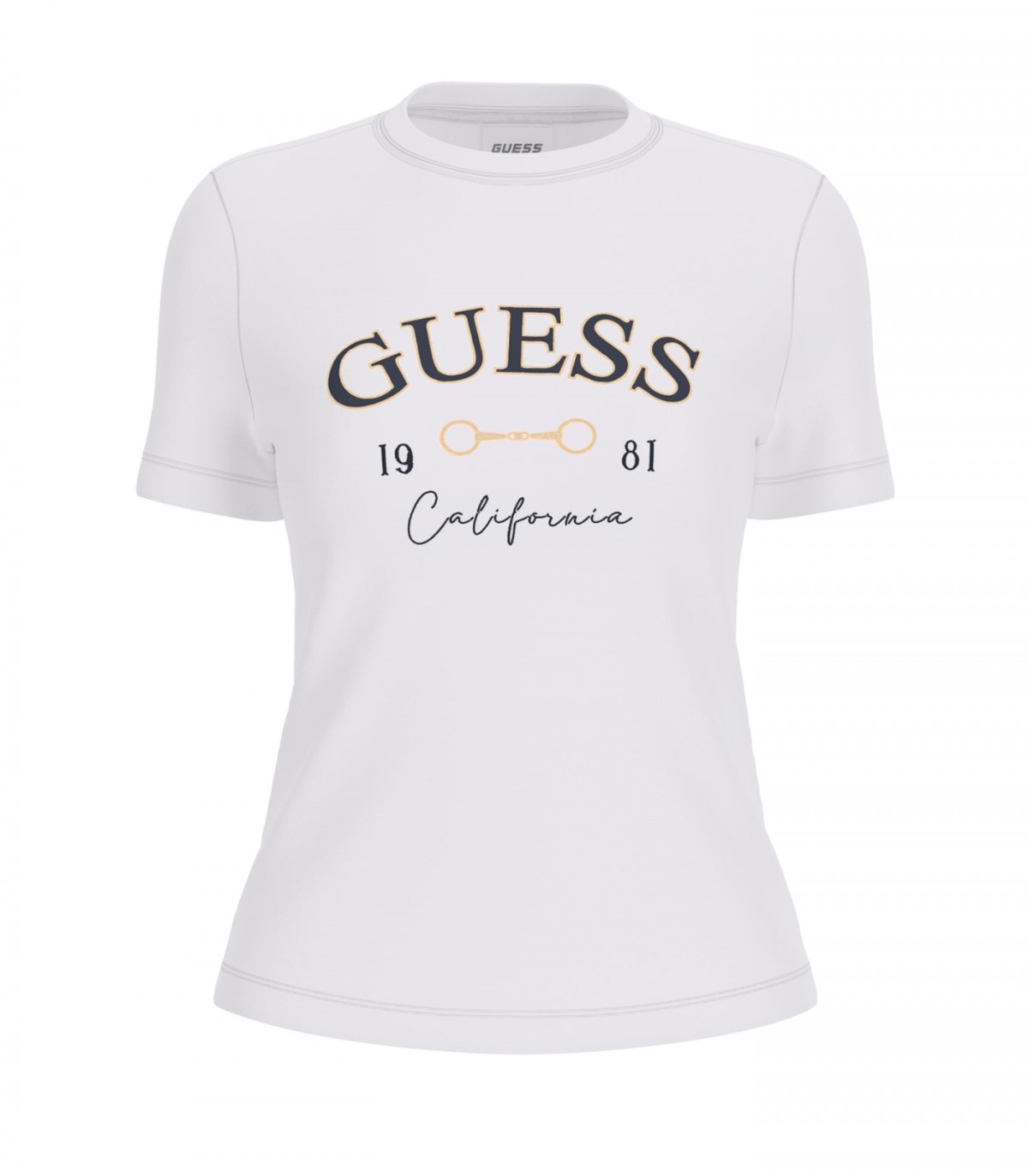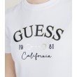 Šim baltajam Guess sieviešu T-kreklam ir vienkāršas, tīras līnijas un izliekts logotips priekšpusē. Priekšpusē ir uzraksts "Guess California 1981".