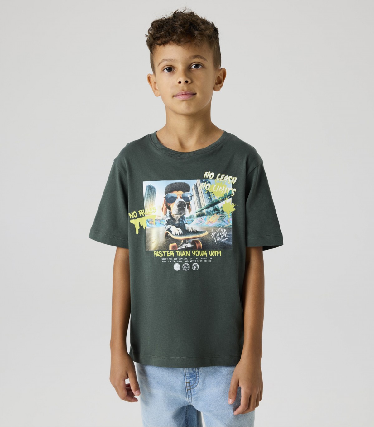 Ērts un stilīgs bērnu T-krekls Name It ikdienas valkāšanai. Priekšpusē ir jautra un krāsaina apdruka, kas piešķir T-kreklam personību. Mīksts audums nodrošina komfortu un kustību brīvību.
