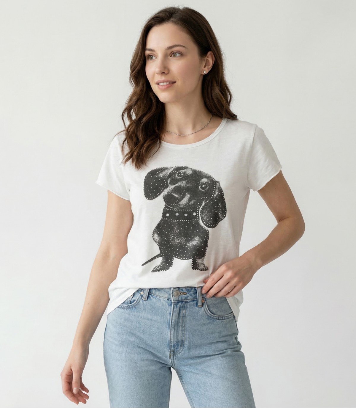 Hailys sieviešu t-krekls ir stilīgs un ērts ikdienas valkāšanai. Izgatavots no mīkstas kokvilnas, T-krekls nodrošina komfortu un gaisa caurlaidību. Priekšējā apdruka ar akmeņu rotājumiem piešķir unikālu izskatu.