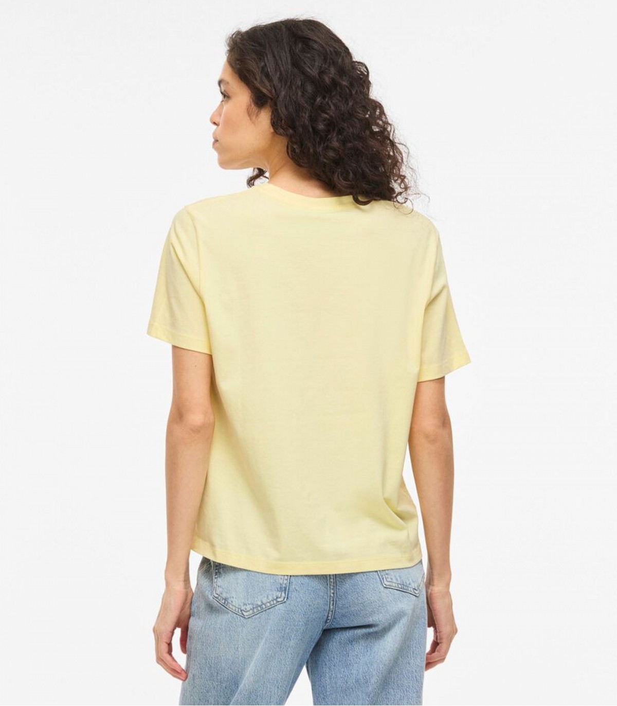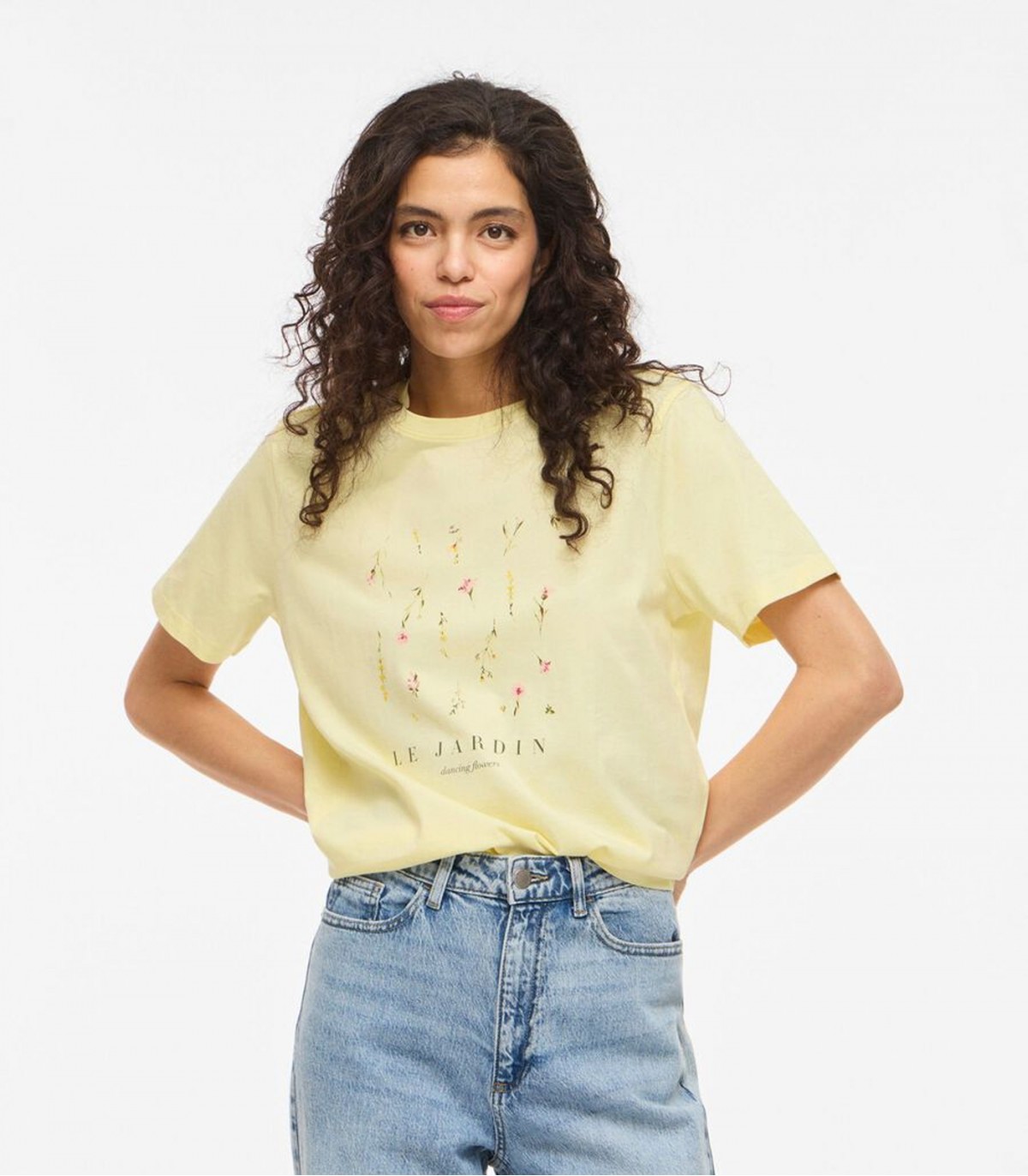 Šis mīkstais Vila sieviešu T-krekls ir ērts ikdienas valkāšanai. Smalks ziedu raksts uz krūtīm piešķir vienkāršajam dizainam dekoratīvu elementu. Viegli sader ar džinsiem un svārkiem.