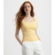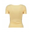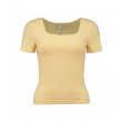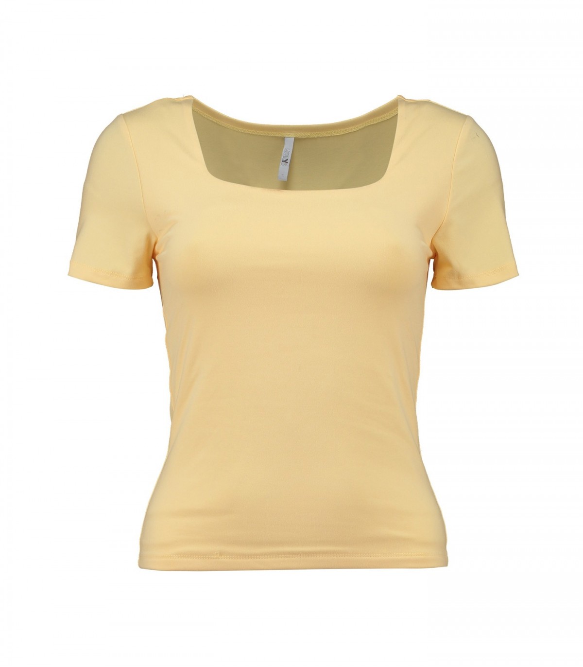 Šis sieviešu T-krekls ir izgatavots no elastīga poliestera maisījuma auduma ar pievienotu elastānu, un tam ir pieguļošs siluets. Īso piedurkņu dizains ar kvadrātveida kakla izgriezumu izceļ dekoltē un nodrošina ērtu piegulšanu. Tas ir lieliski piemērots gan ikdienas, gan stilīgam izskatam.