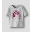 Šis meiteņu T-krekls no Name IT ir izgatavots no mīkstas kokvilnas. Tam ir košs apdruka priekšpusē ar mirdzošām detaļām rotaļīgam un elegantam izskatam. Tā klasiskais, taisnais piegriezums ar īsām piedurknēm un apaļu kakla izgriezumu padara to ērtu ikdienas valkāšanai.