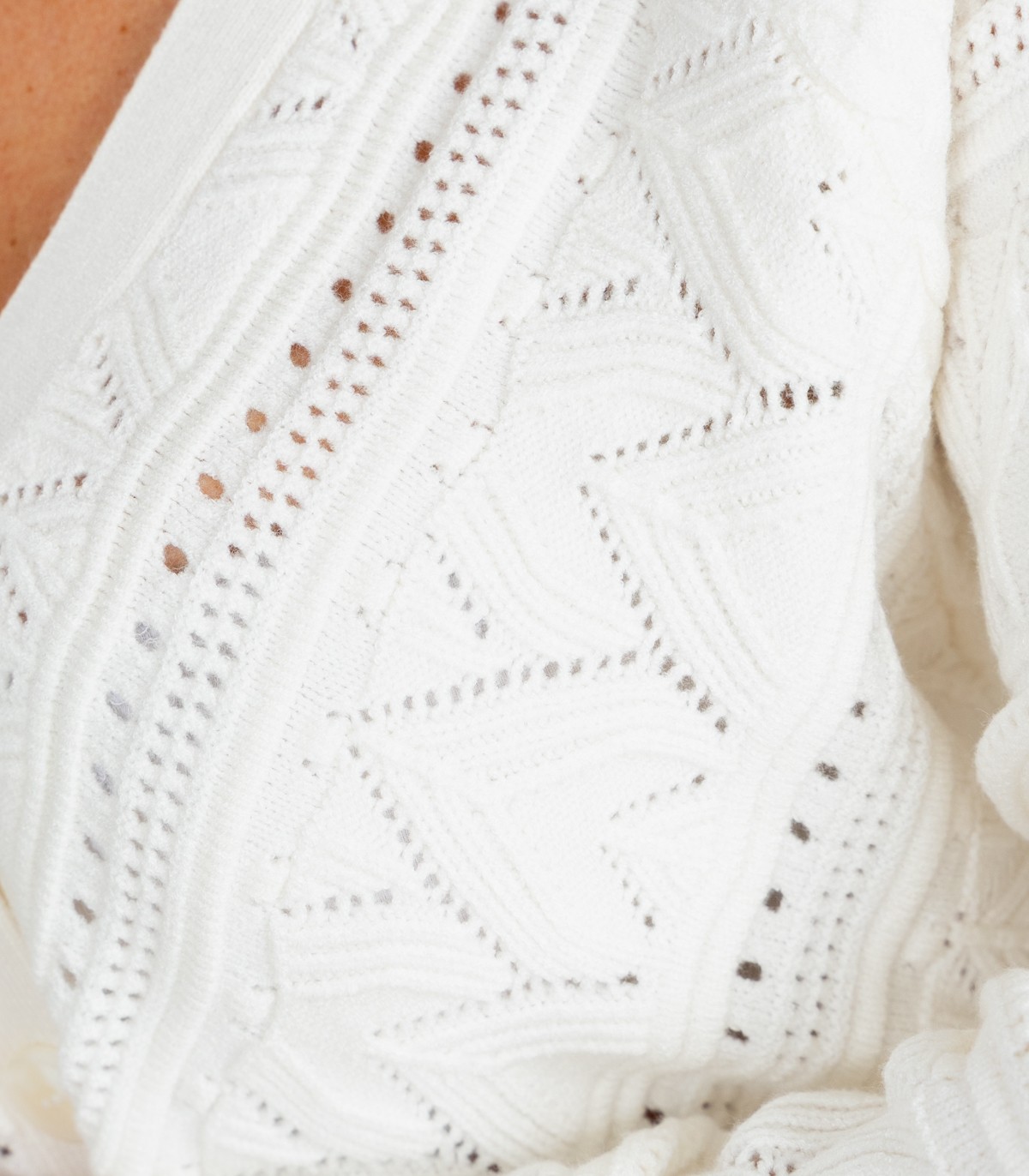 Ažūra adījums piešķir vieglumu un gaisīgumu, piešķirot izstrādājumam izsmalcinātību. Tas būs lielisks papildinājums jūsu ikdienas vai biroja garderobei.