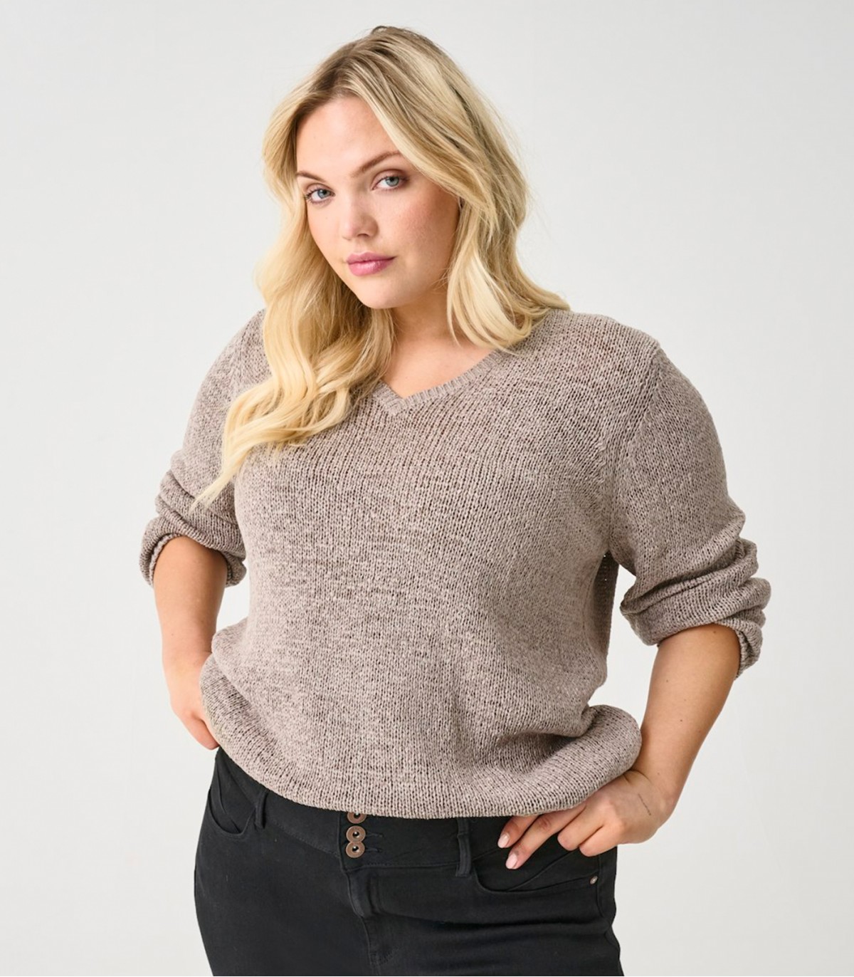 Ērts un viegli valkājams džemperis ar V veida kakla izgriezumu ir lieliski piemērots ikdienas valkāšanai. Adīts no mīkstas dzijas, kas uztur siltumu un labi pieguļ.