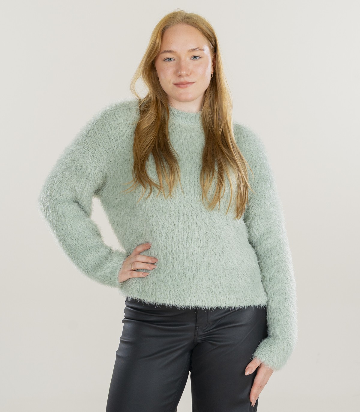 Mīksts, pūkains sieviešu džemperis: ērts un silts.