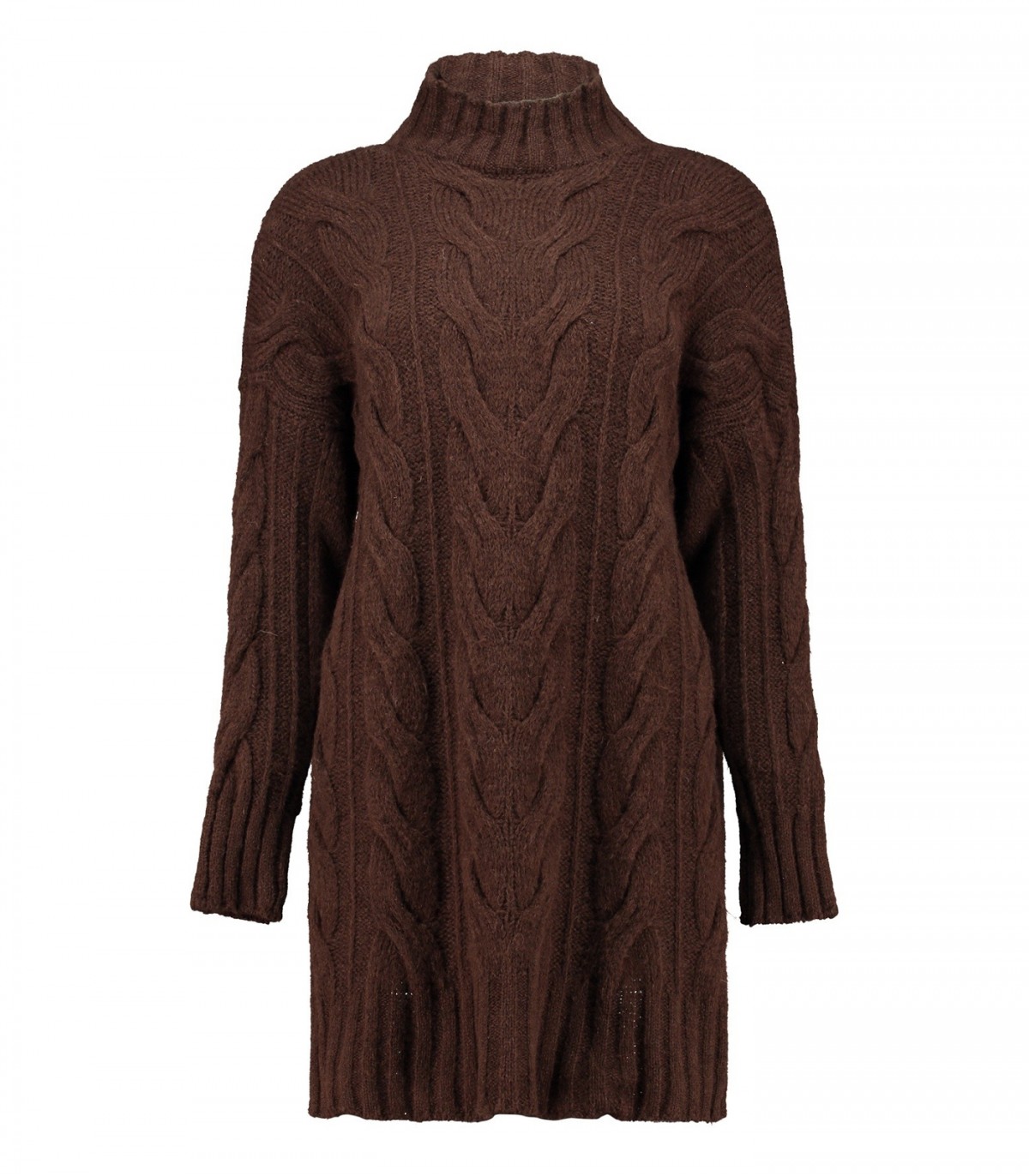 Silta un ērta džemperkleita no mīksta trikotāžas auduma, ko var valkāt gan kā kleitu, gan kā garu džemperi. Teksturētais pinuma raksts un augstais kakla izgriezums rada klasisku un ērtu izskatu.