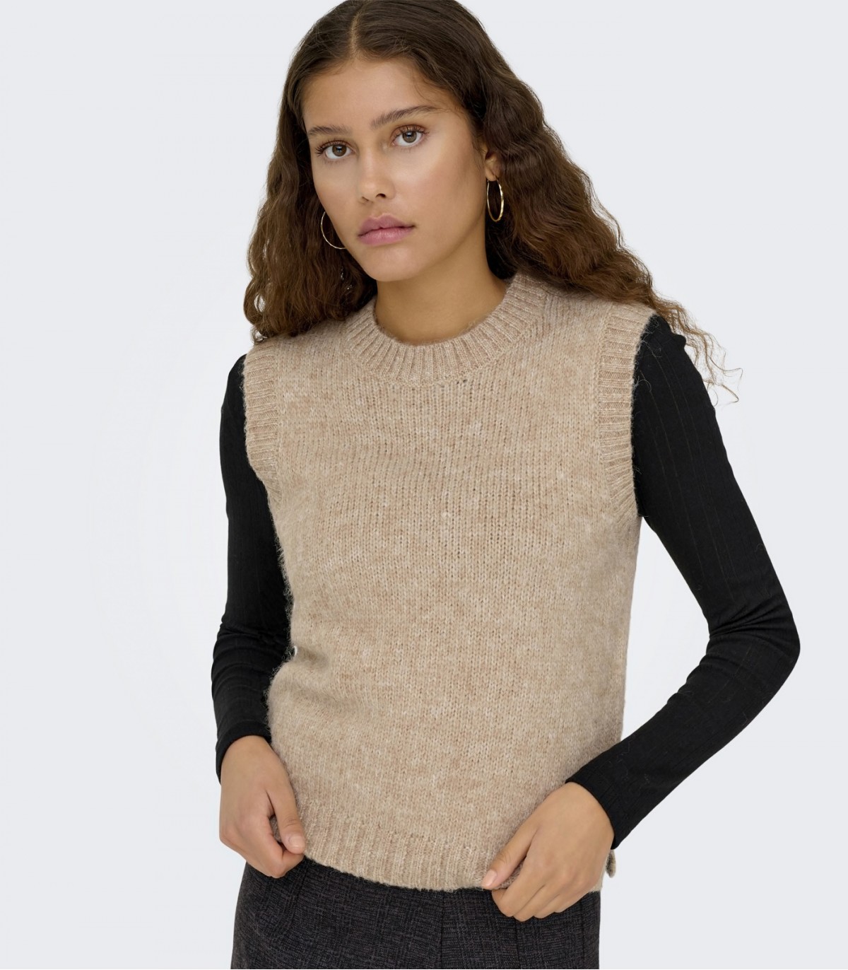 Šī stilīgā sieviešu JDY veste ir darināta no mīksta trikotāžas auduma, kas ir lieliski piemērots slāņošanai. Tās klasiskais siluets un glītais apaļais kakla izgriezums piešķir tīru, modernu pieskārienu.