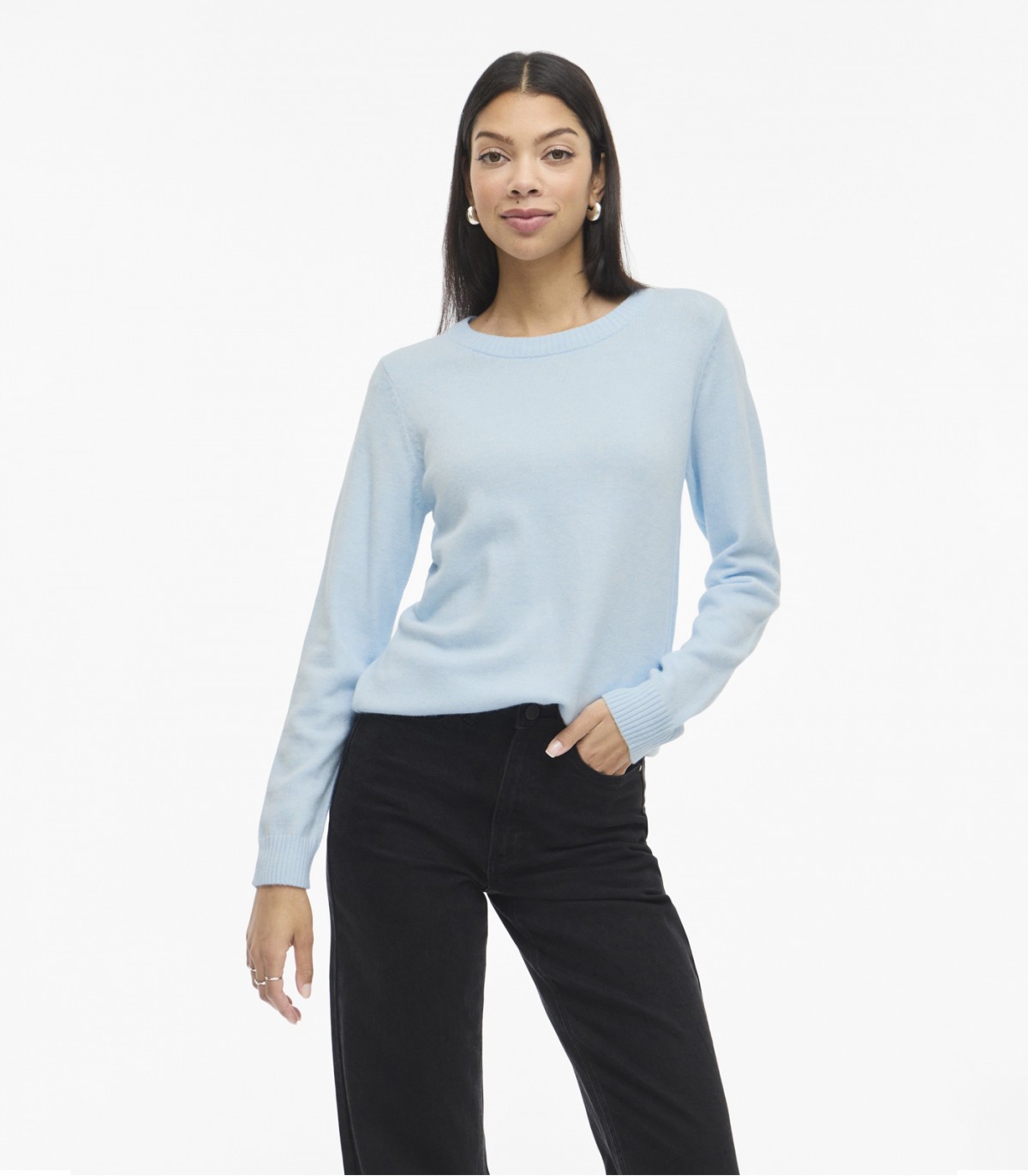 Adīts džemperis ar apaļu kakla izgriezumu.
