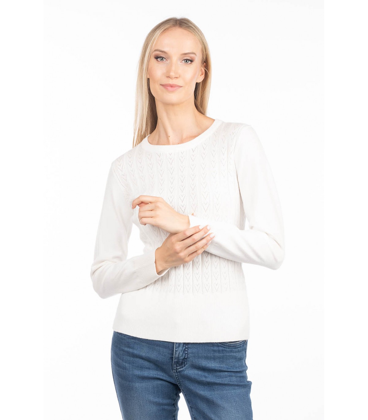 Šis gaisīgais un elegantais mežģīņu džemperis ir patīkami viegls un elpojošs. Mīkstā, ādai draudzīgā viskozes dzija un viegli pieguļošais piegriezums rada sievišķīgu un izsmalcinātu izskatu.