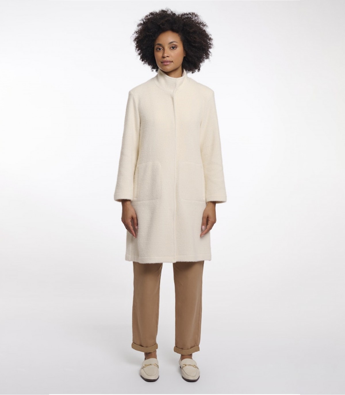 Rino & Pelle sieviešu kardigans ir vienkāršs un stilīgs apģērba gabals, kas radīs ērtu un elegantu izskatu. Tā taisnais piegriezums un stāvapkakle rada glītu un modernu izskatu. Slēpta spiedpogas aizdare saglabā minimālistisku dizainu, savukārt sānu kabatas nodrošina praktiskumu un ērtības ikdienas valkāšanai.