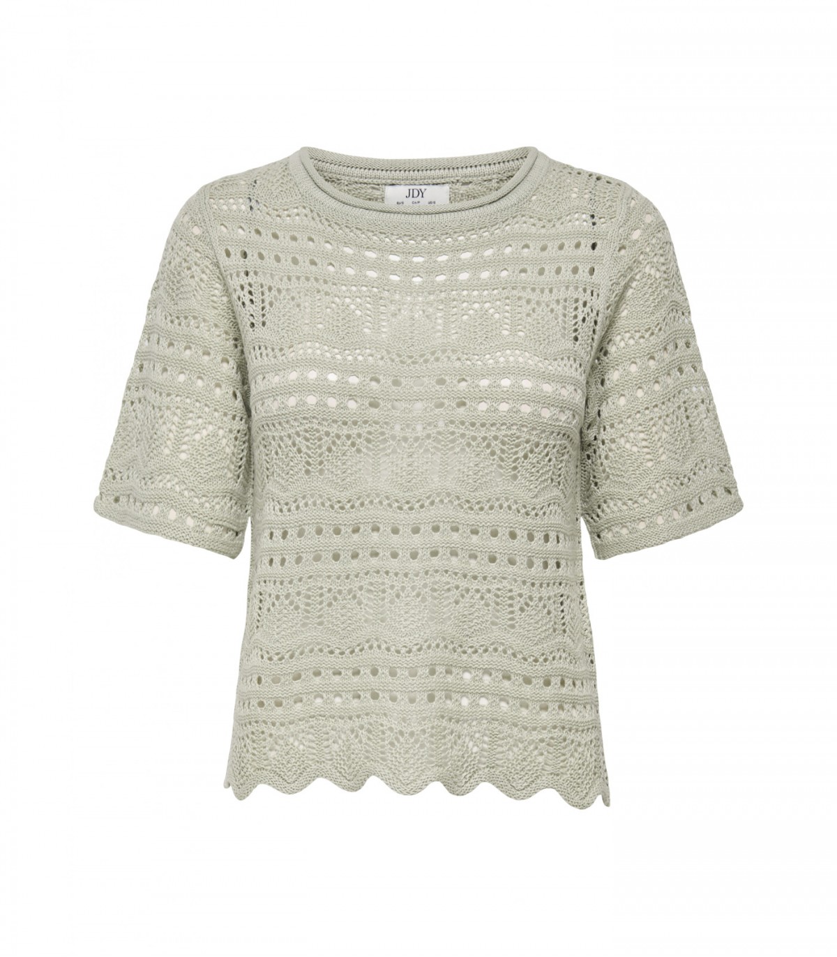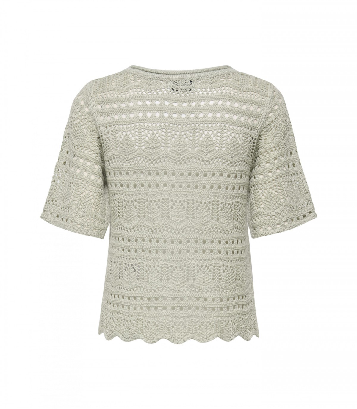 Šis īsais, gaisīgais adītais džemperis jebkuram tērpam piešķirs sievišķīgu pieskārienu. Apaļš kakla izgriezums un 3/4 garuma piedurknes rada mūžīgu izskatu, savukārt viļņotā apdare piešķir rotaļīgumu. Lieliski piemērots vasaras dienām.