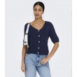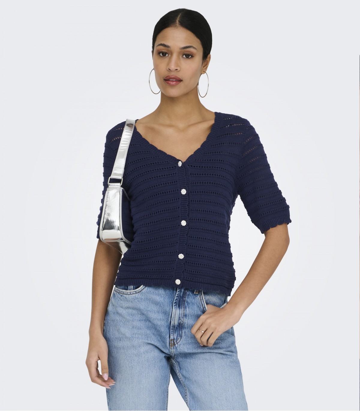 Šis sieviešu kardigans ir viegls un daudzpusīgs apģērba gabals, kas ir ideāli piemērots pavasara/vasaras sezonai. Izgatavots no mīksta trikotāžas auduma, tas ir ērts pret ķermeni un papildina gan ikdienas, gan sievišķīgāku izskatu. V veida kakla izgriezums vizuāli pagarina siluetu, savukārt īsās piedurknes piešķir apģērbam vieglu, modernu izskatu.