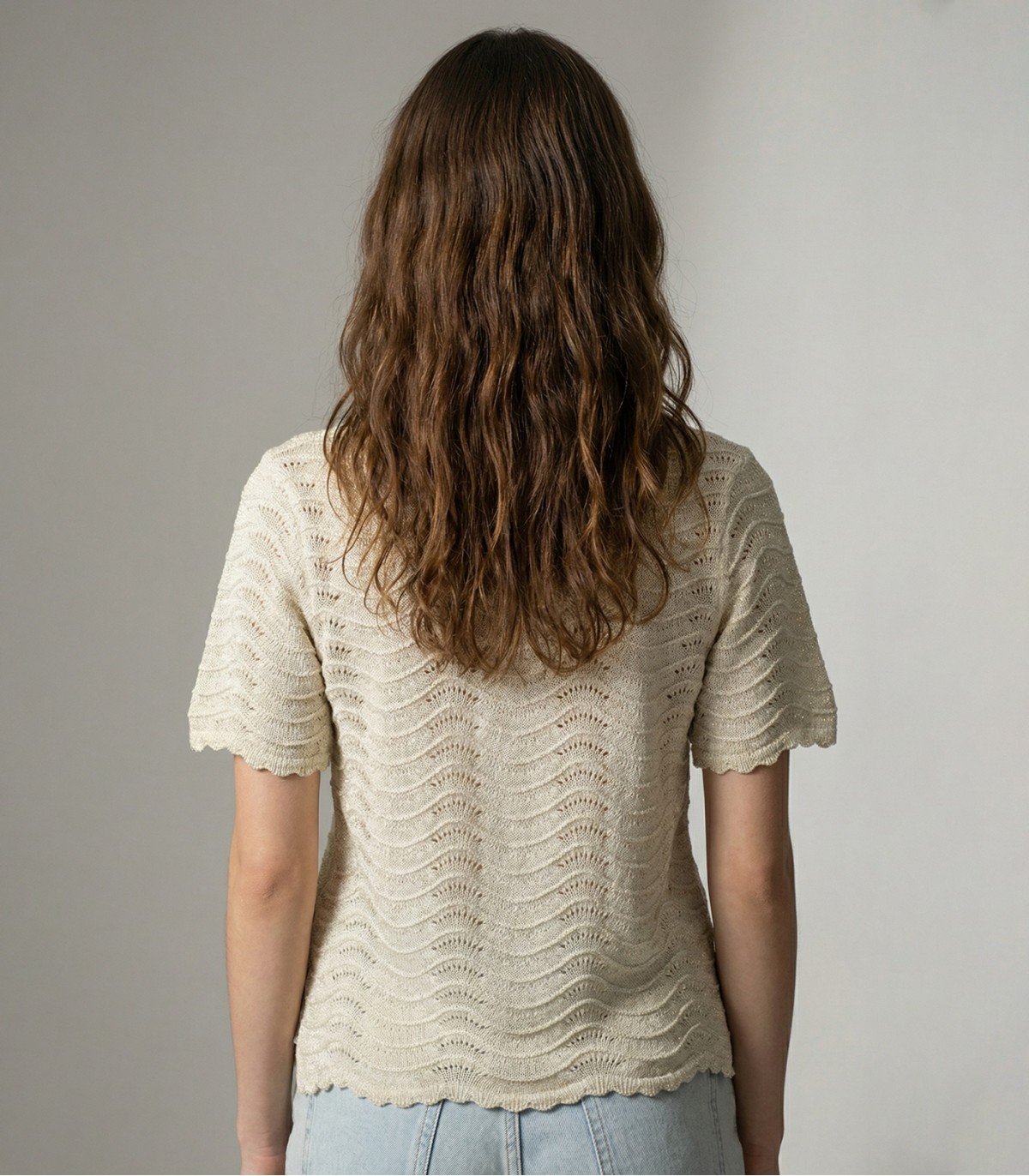 Šis vieglais, īsroku Hailys sieviešu adītais džemperis ir lieliski piemērots siltākām dienām. Viļņainais raksts un apstrādātās malas piešķir vienkāršajam piegriezumam vizuālu struktūru.